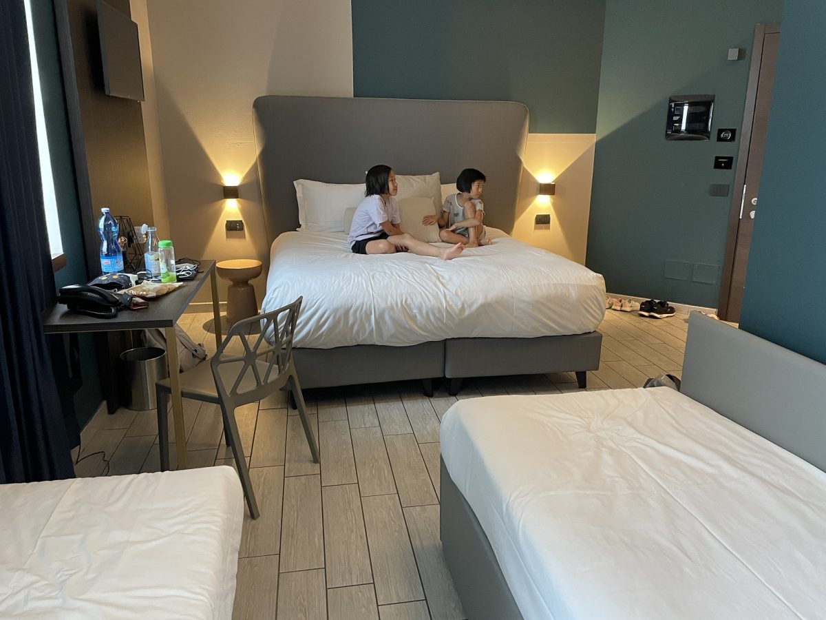 點解呢個day 2可以有四篇blog咁多呢?因為我哋由香港飛過嚟係先「賺時差」,北京出發時係凌晨一兩點,飛11個鐘,嚟到又係清晨六點左右,賺咗六個鐘,當然會返香港就有借有還啦,所以到day 14、15時又會平平淡淡咁好快過晒啲時間~因為飛機上休息得唔好+時差+已經活動咗好多個鐘,我哋係街上遊蕩到酒店可以check in就返酒店啦~今次旅行除咗郵輪嘅七晚之外,我哋前前後後會係意大利住五晚總共四間酒店,我book酒店都係target越近火車站越好,減少travel嘅時間,可能因為追求近,要平衡價錢、質素、位置等都花費一啲工夫~