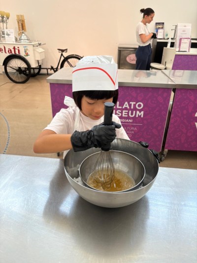 都幾多人參加啲tour喎,除咗參加Gelato for Families嘅另一個家庭之外,仲有更多人係參加Taste Gelato History,大家一齊跟Francesca老師參觀博物館,跟住就分開兩組,Taste Gelato History嘅各位就拎住試食券去食雪糕,我哋Gelato for Families嘅兩個家庭就親手做~