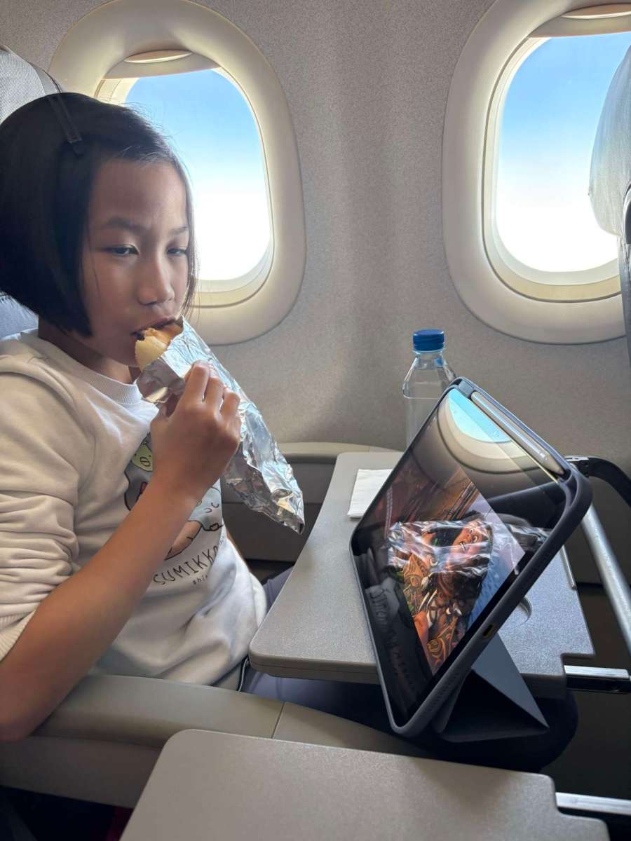 香港航空冇機上娯樂,三個幾鐘頭嘅飛行時間要自己娛樂自己啦~之前買咗個type C轉3.5mm插頭,諗住俾佢哋用ipad時可以用傳統耳機嚟聽,點知唔work,結果搭飛機時都係我借咗對air pods俾佢哋用,兩個自己安安靜靜睇電影,因為Moanna出第二集,所以佢哋專登係Disney+ download定第一集嚟睇,我冇耳機用,之前download咗一堆劇集冇得睇,咁我專心打機啦﹗薩爾達傳說智慧的再現我已經玩到七七八八,明明已經可以去打終極boss,因為一直都有啲驚而逃避,最近都係做下迷你任務呀,搞下呢搞下路,既然搭飛機搭咁耐,就解決咗個boss啦~不過冇開到聲音感覺係差少少,投入度低啲,因為打boss時係我—-薩爾達公主,同劍士林克合作,而今次林克係唔會死嘅,我只要避開攻擊、又間中飲下補給,捱下捱下始終會贏嘅,我就係係呢程飛機時打爆機啦~yeah~