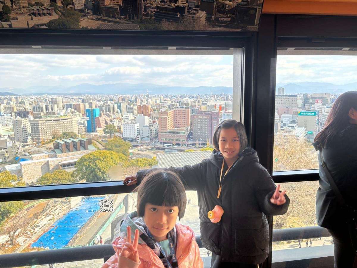 熊本城裡面一層層嘅展館介紹唔同時期嘅熊本城歷史,展覽文字全日文,其實有個熊本城參觀嘅官方app,好似有啲導覽資料,我哋又唔係歷史愛好人士,又唔係特別多時間慢慢研究,結果都冇download到嚟睇lu~最下面兩層我哋都仔細地慢慢睇下啲展品,好似建築模型、以前嘅盔甲、說明影片等,後來發現時間唔夠,三四樓好似係飛過咗,直接上去頂樓展望台~