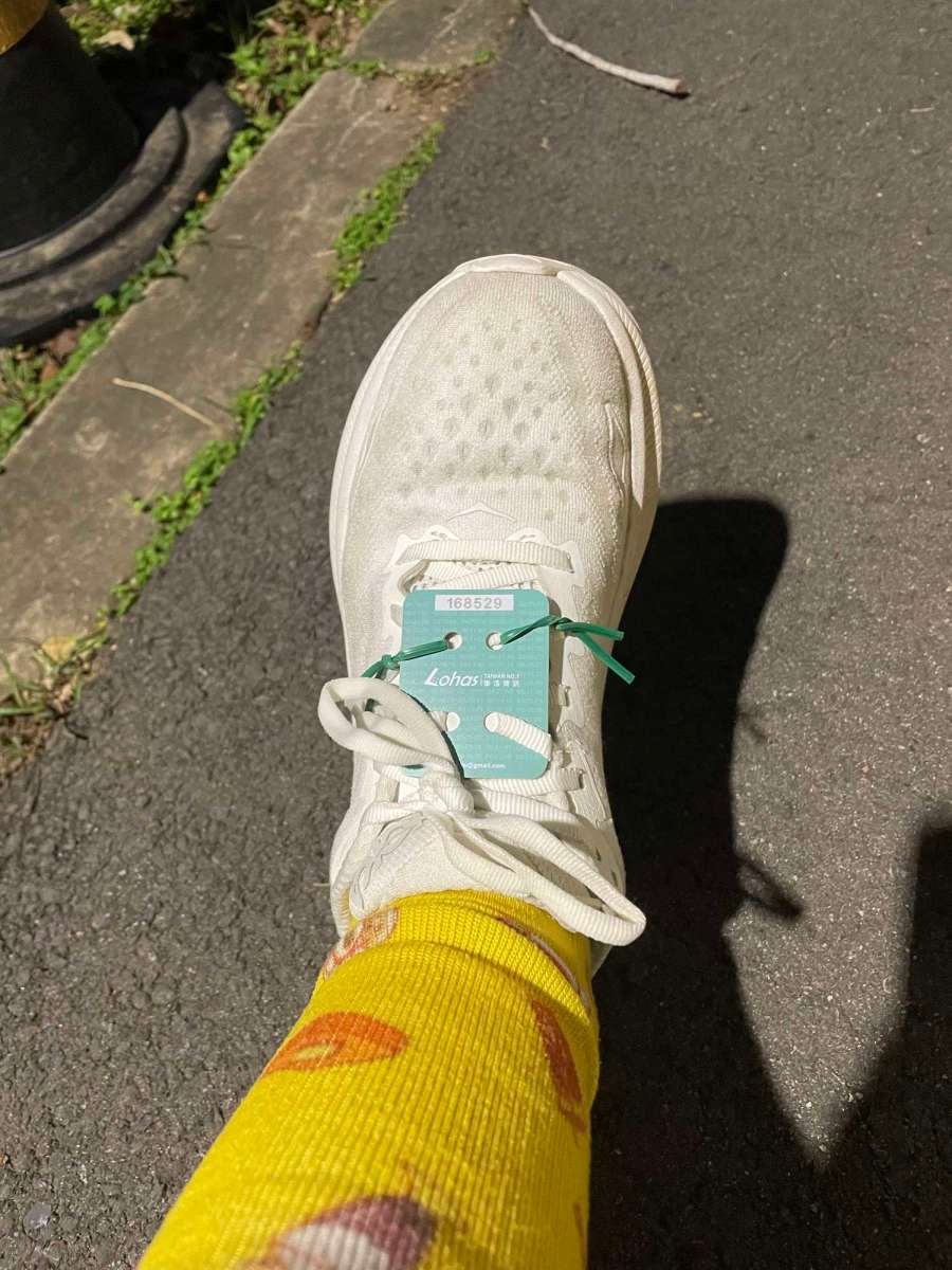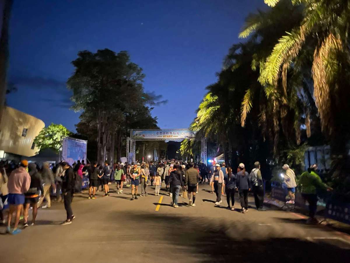 我哋綁計時晶片喺鞋度唔熟手,搞咗好耐,個天又黑麻麻,變成開始光lu~