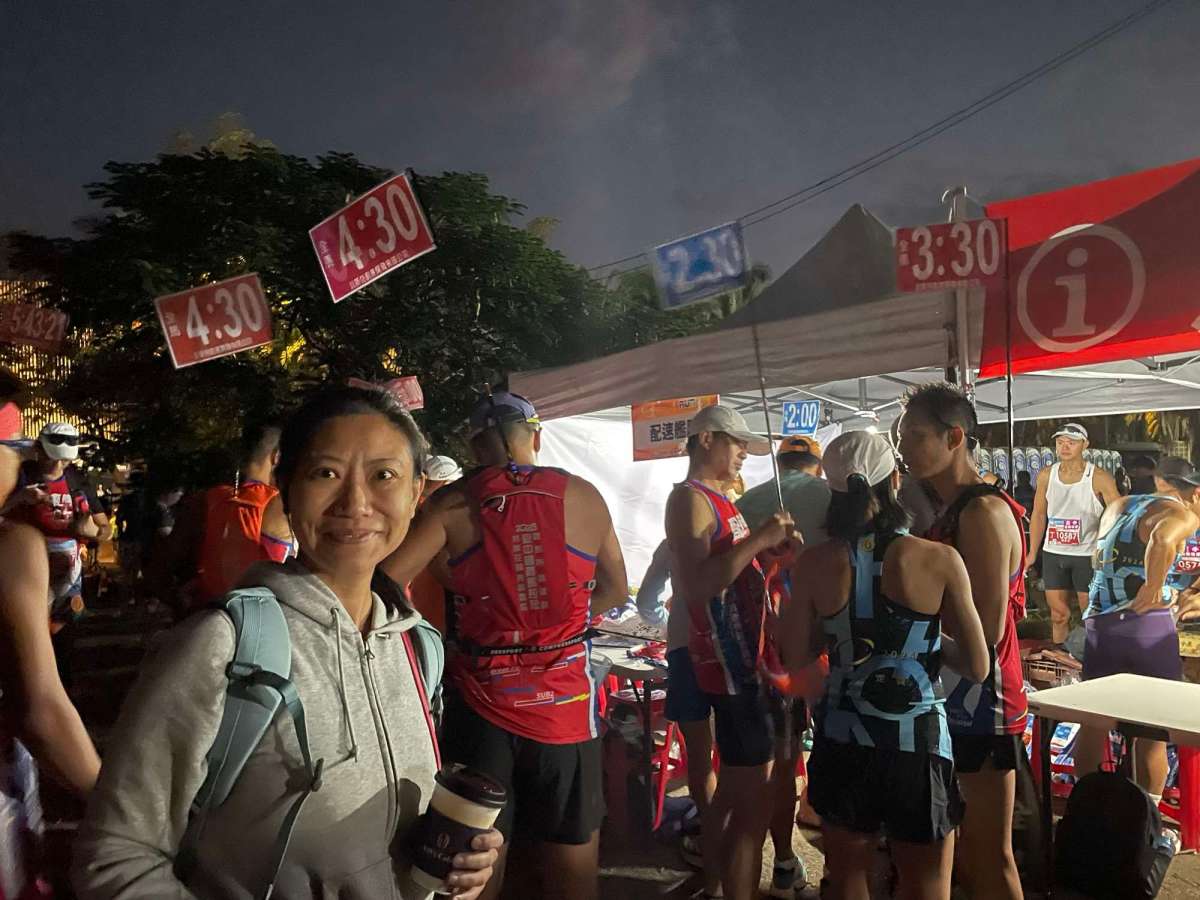 大會有安排配速員,我預計自己完賽時間大約係2:20至2:30之間,所以唔好慢過2:30嘅配速員就ok,我發現佢哋唔係均速跑,次次都係我喺補給站飲完嘢之後,佢哋就會從後趕上,一枝箭咁樣追過我,到下一次補給站後,佢哋又喺我後面趕過嚟~