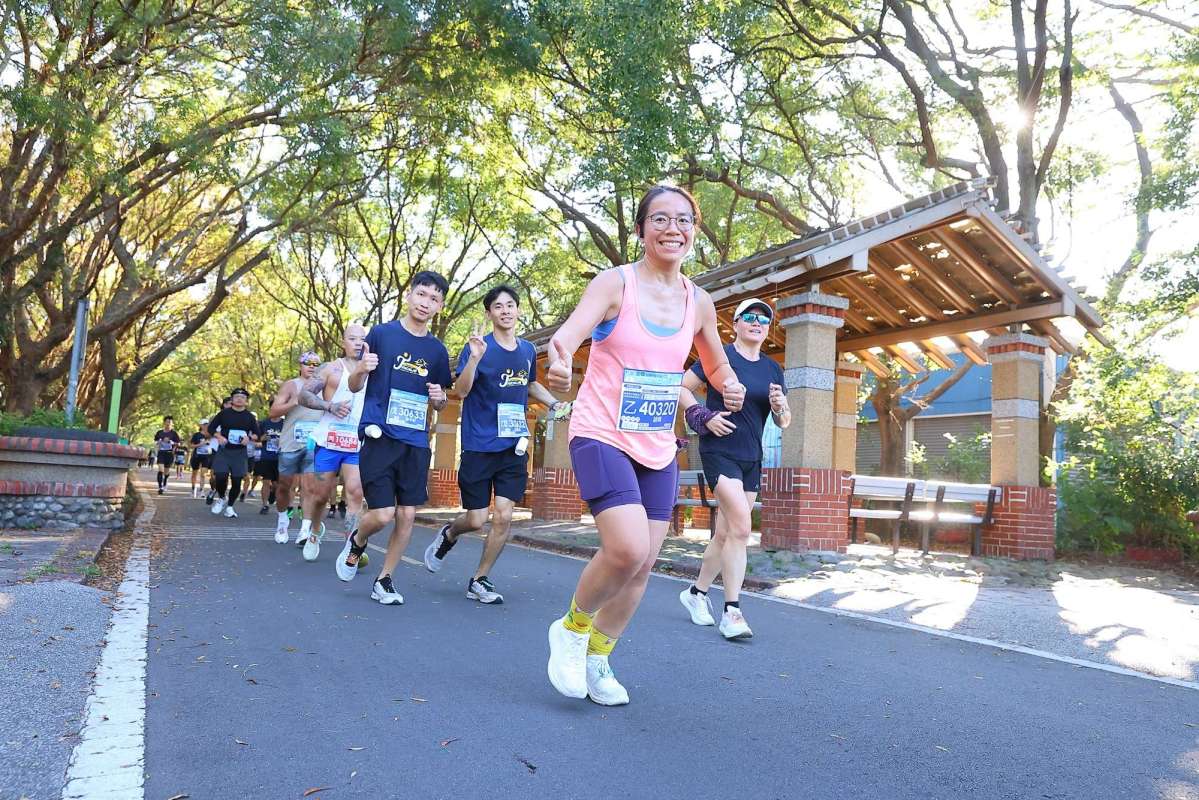 今個賽事有全馬組、半馬組、13km挑戰組、同埋6km樂活組,每組出發時間相隔10分鐘~全馬組喺我哋前面出發,跑咗冇耐就同半馬組分道揚鑣,13km挑戰組喺我哋後面出發,所以初段有啲快嘅13km參賽者會喺後面追過我哋呢啲唔算特別快嘅半馬參加者,不過後來路線唔同跑跑下就唔會見到佢哋,至於6km樂活組,初段沿路折返時,佢哋喺對面線,男女老友齊齊參加,甚至有人推住BB車參加,因為6km樂活組限時6個鐘,基本上冇可能完成唔到,呢個活動真係與眾同樂~即使係半馬,門檻都唔高,限時3個半鐘,比起香港渣馬限時3小時鬆動得多!13km飲啤酒嗰個位,就係同全馬組會合路線嘅位置,去到隧道時,就見返啲13km挑戰組嘅參加者,當然係比較慢嘅13km參加者啦,快嗰啲一早跑完啦!