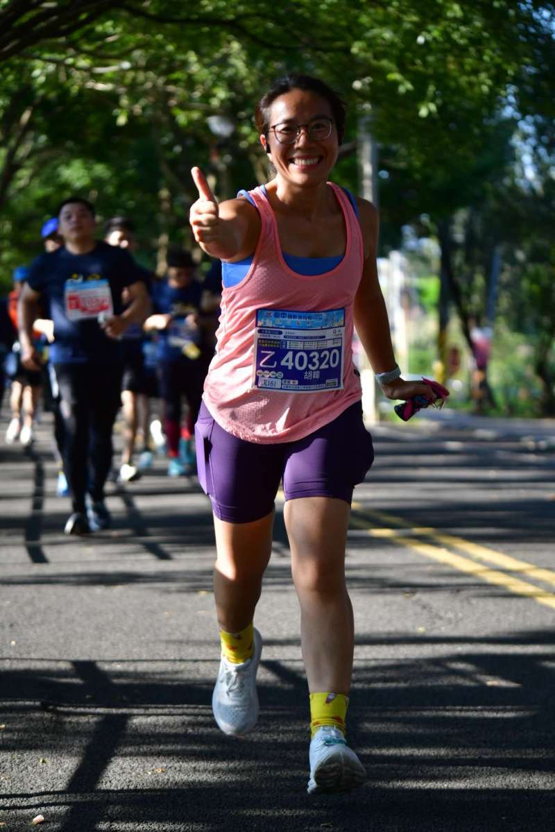 衝線嗰一刻都好印象難忘,因為號碼布上面印咗我嘅中文全名,所以衝線時聽到MC對住個咪興奮地講:「加油呀!胡暐!恭喜你!」