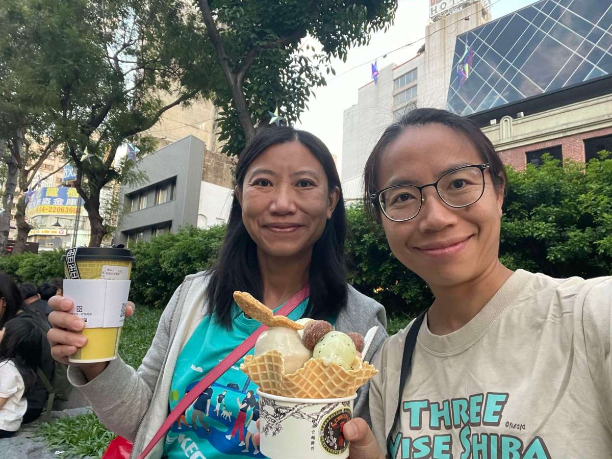 食完嘢,步行過去宮原眼科路上,經過一間手信店,買咗啲糕餅返香港~我哋嚟嘅時候,只係一人一個輕巧嘅背囊,跑完步領取咗個大大衣保袋、獎杯、同埋其他紀念品,已經知道,我哋肯定要寄一件行李先搞得掂,買嘢都唔使顧忌咁多啦!所以我哋兩個,係有少少狼狽咁去買雪糕~