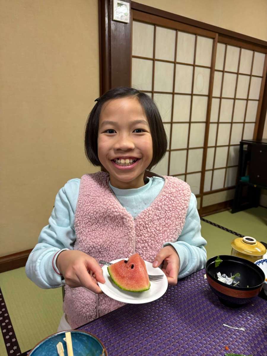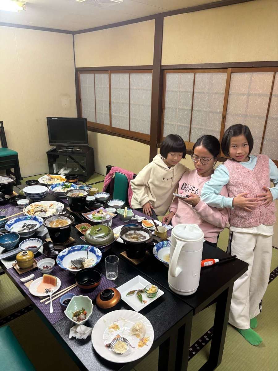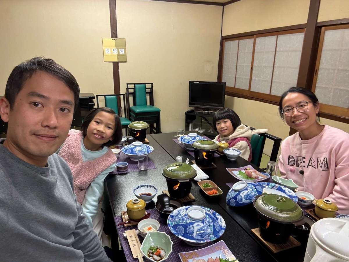 今晚晚飯去咗另一個大啲嘅房間,先一晚坐和式房間榻榻米,今晚算係西式房間有枱有凳~