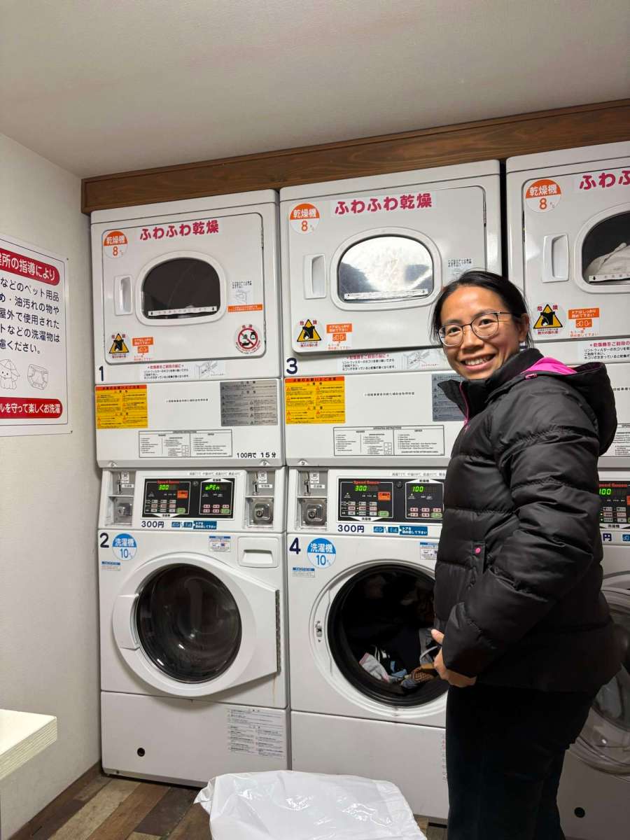 小小嘅宝來館都有coin laundry,明明只係去六日,其實唔使衫都得嘅,有得洗就梗係洗啦,返香港可以洗少啲丫嘛,之後嗰幾日着衫又可以自由啲、放任啲~不過個洗衣房有少少難搵,因為唔識日文,唔知係邊,結果都係要指手劃腳問職員,原來要去屋嘅後門再出去戶外先到,要著番件大褸先去啦~