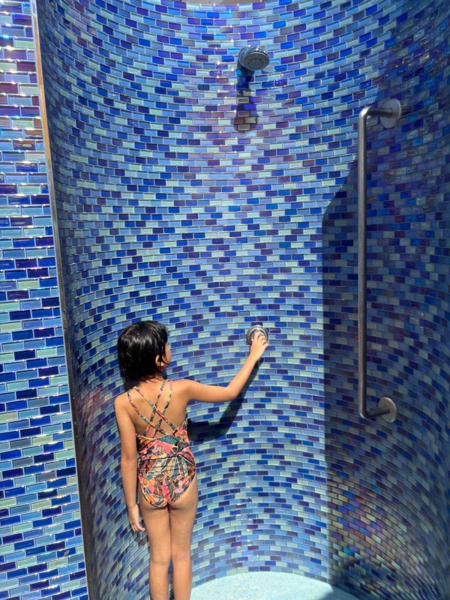 游到差不多夠皮,我哋就返房沖涼換衫~