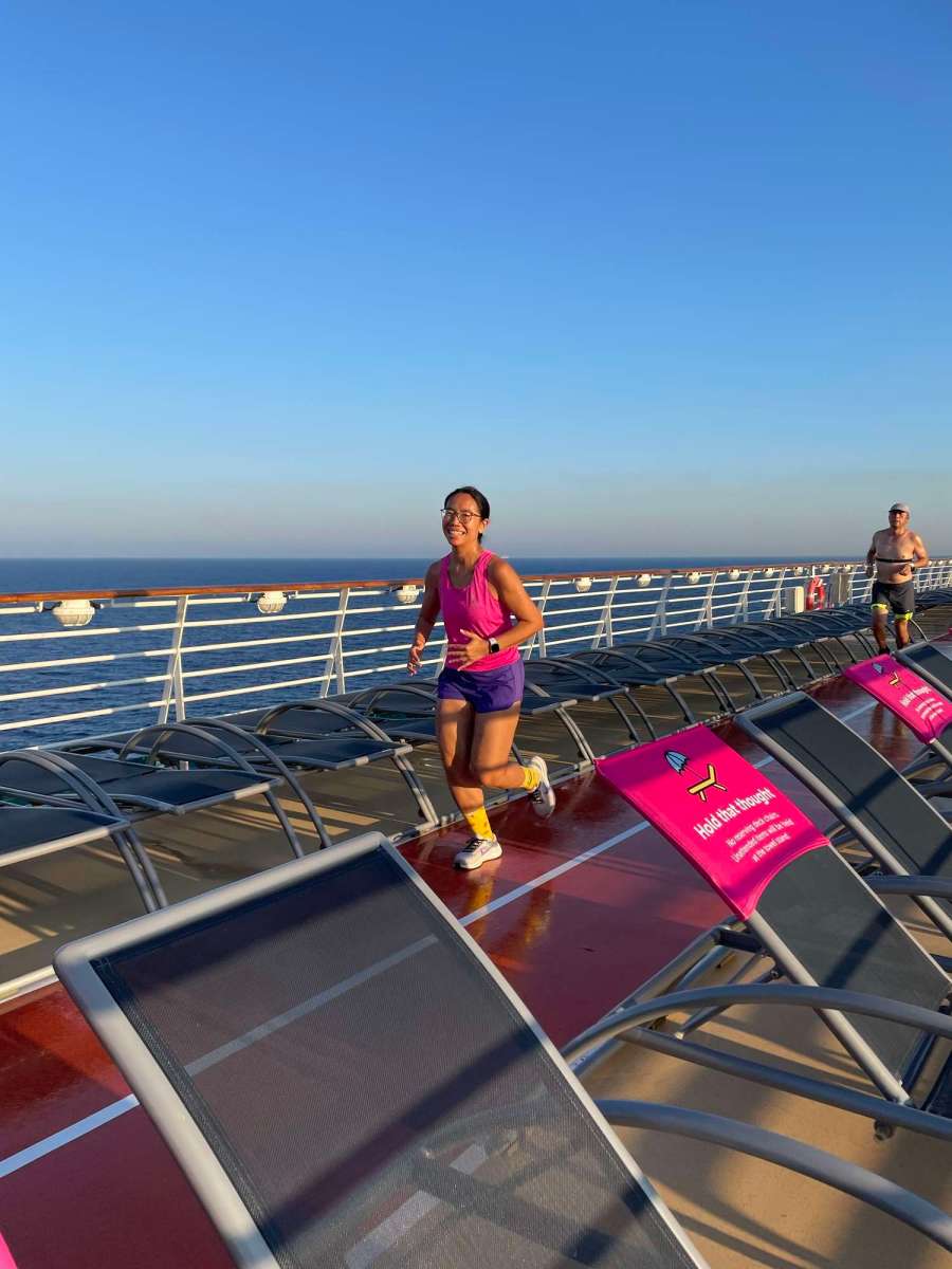 最近努力跑步嘅我,知道郵輪甲板有跑步track,專登帶咗跑步衫,睇吓幾時有機會練下跑!