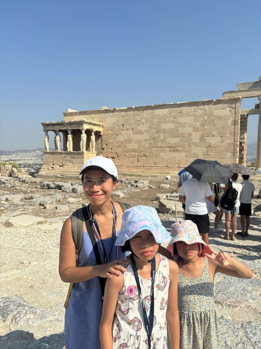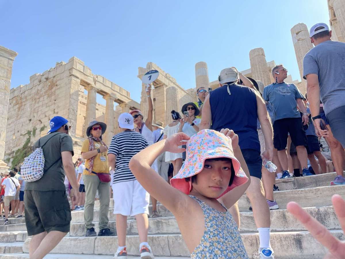 對於雅典衛城嘅印象,一言以蔽之—-熱!!!即使戴晒帽,都敵不過猛烈嘅陽光,曉、詩都被陽光嘅熱力擊倒,冇晒心機,影相都係略略配合,笑容少咗多多包涵~晒到燶晒,所以返到香港,個個都好驚訝我哋幾個皮膚黑咗咁多~
