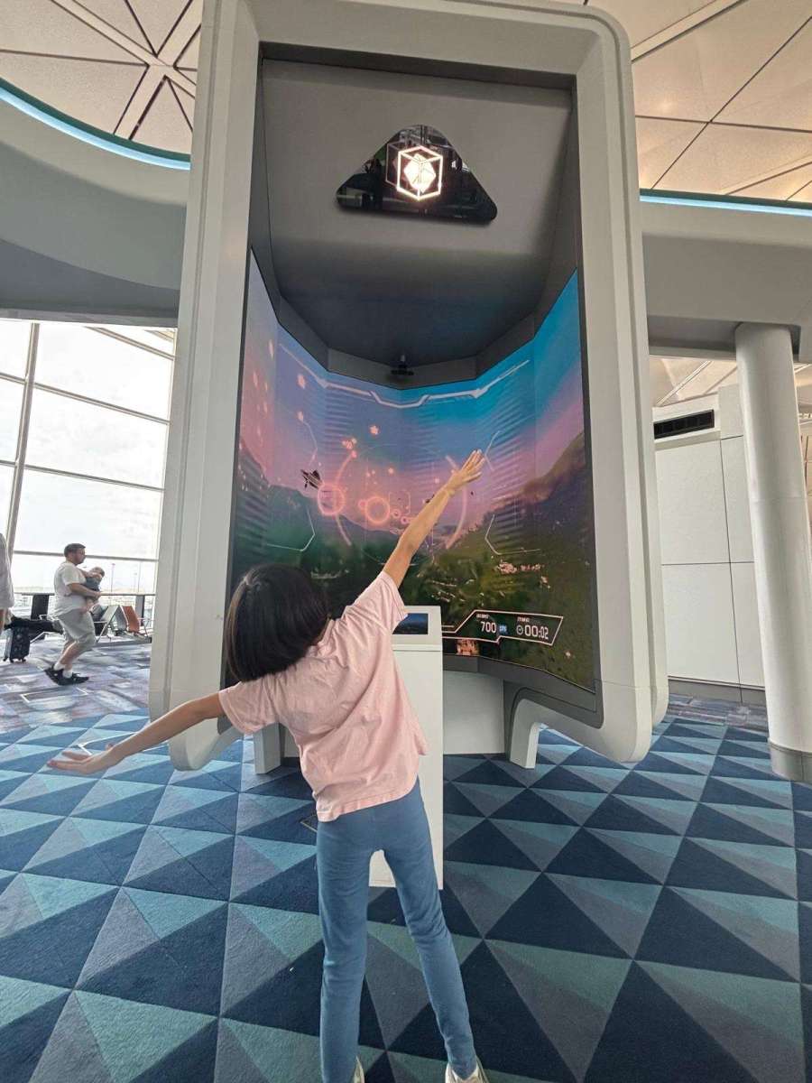 食飽飽我哋行埋過去閘口預備上機,附近有得玩遊戲呢~