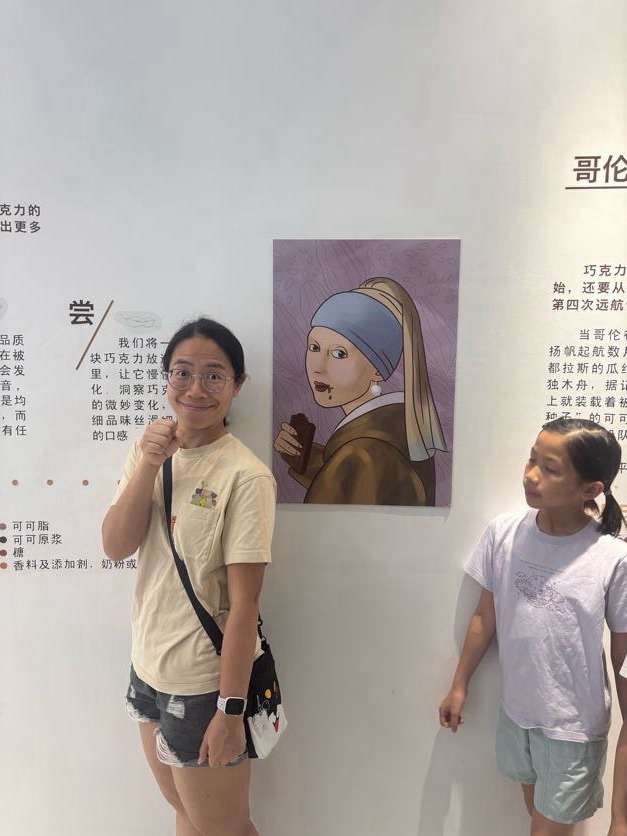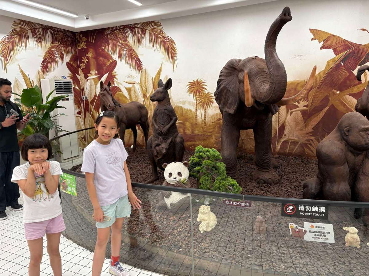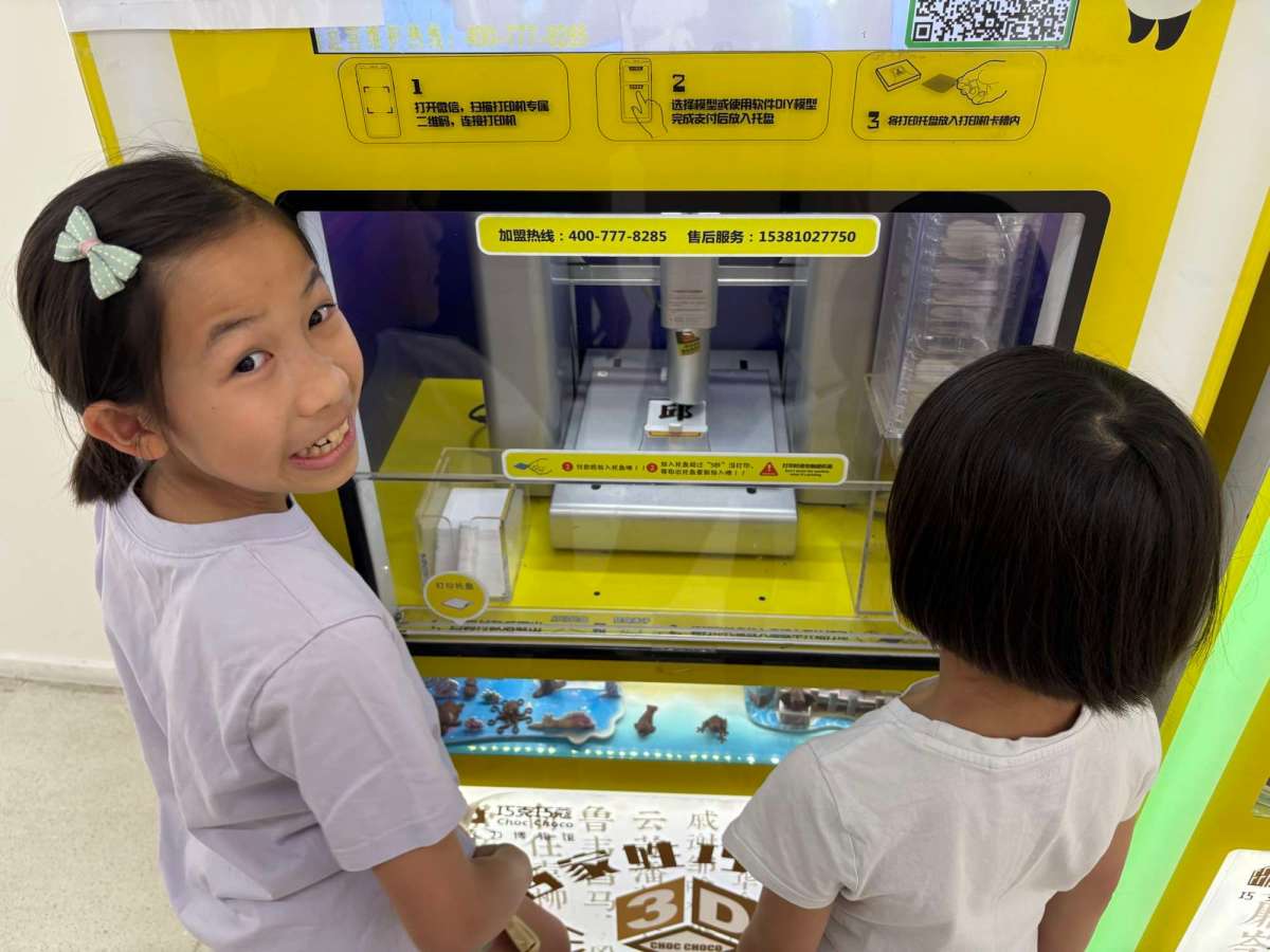最特別嘅係有得用朱古力嚟3D print字,我哋俾咗RMB20左右,整咗個「邱」字,睇住個擠嘴一層一層擠出嚟,似模似樣,都幾得意~出嚟啲朱古力大軟,諗住等佢凝固得硬啲先食,可能天氣太熱,根本冇變硬過,結果umum…都係冇食到就掉咗,算啦,滿足咗我哋好奇心叫做值回票價啦~