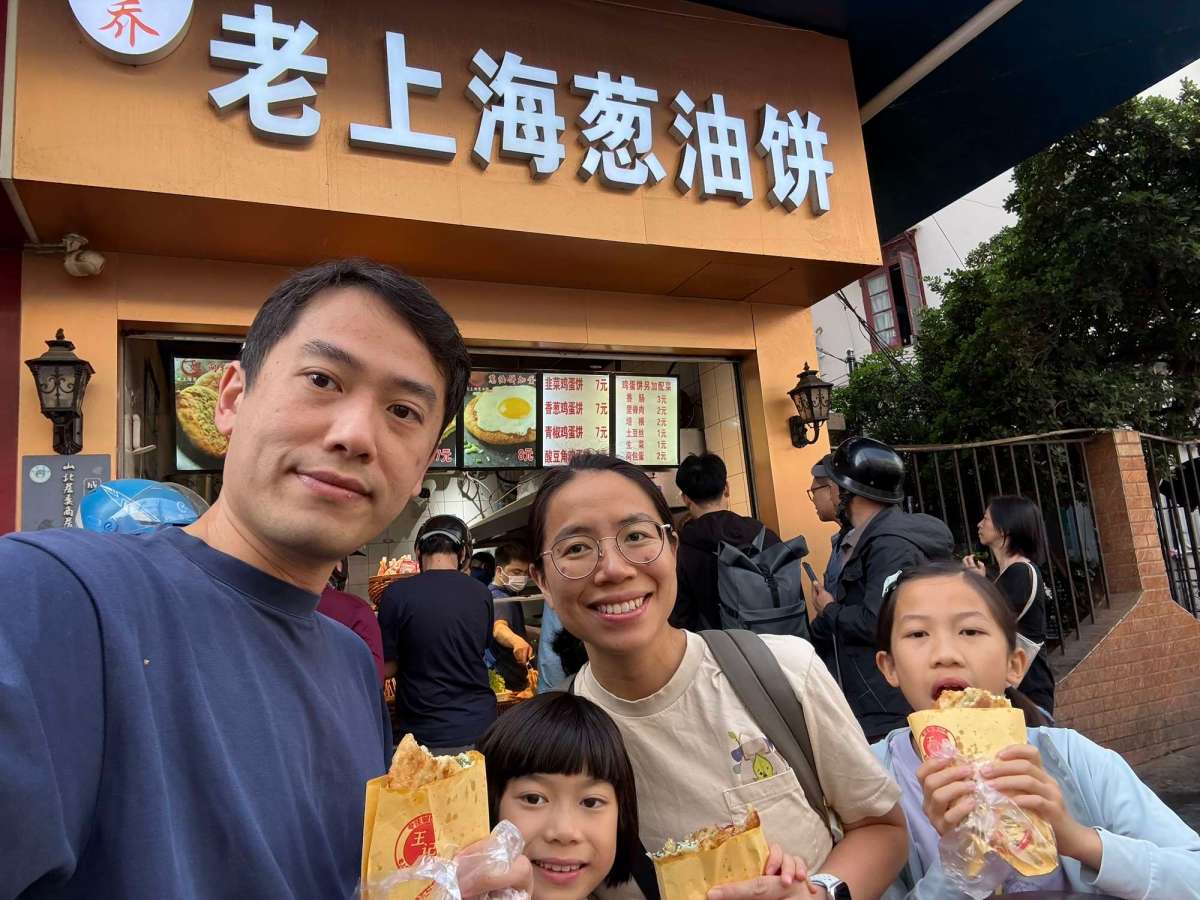 樓下成條街都好多嘢食賣,燒餅、包子、腸粉、小籠包等等,不過唔係好多間可以坐入去食,結果大家想食嘅嘢唔同,就分道揚鑣了,我哋買咗葱油餅,見到好多local人買嚟做早餐,我哋又試下先~