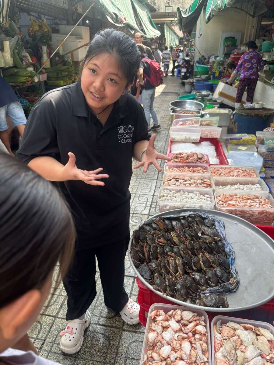 好多年前同家姐去曼谷嗰次,都camp參加咗市場導賞tour+烹飪班,嗰次覺得好正,所以今次都搵咗類似嘅嘢同大家一齊去玩~邱氏四人跟住Vivian行,始終我哋廣東人同越南地域比較接近,用嘅食材都相對比較相似,蔬菜?難唔到我哋嘅!內臟?嚇唔到我哋嘅!