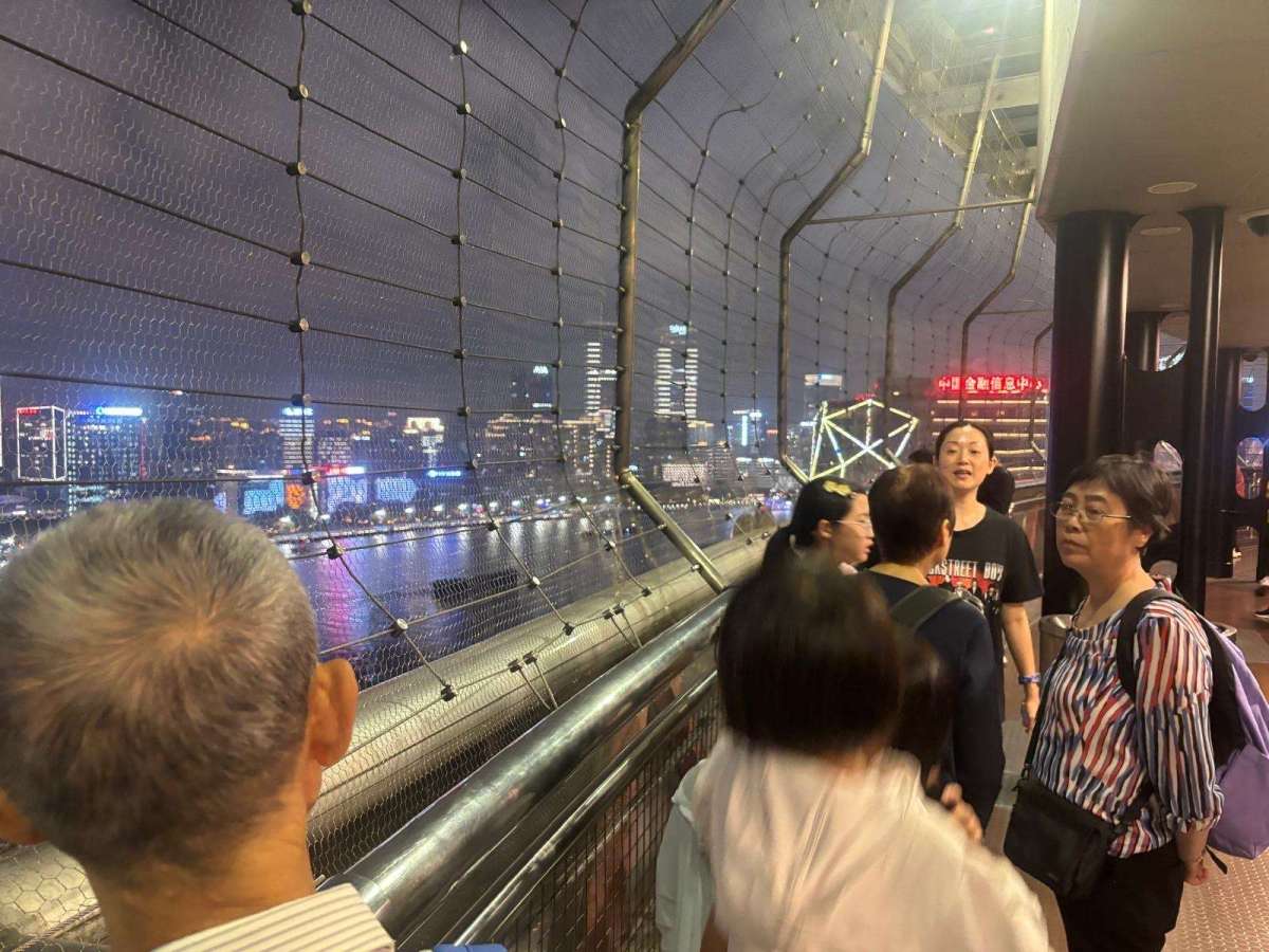 原來遊覽明珠塔係單一方向前進,我哋排隊搭電梯直達263米主觀光層,喺嗰幾層上下遊玩完,食完自助餐先可以落去90米戶外觀光廊同埋78米嘅多媒體show~