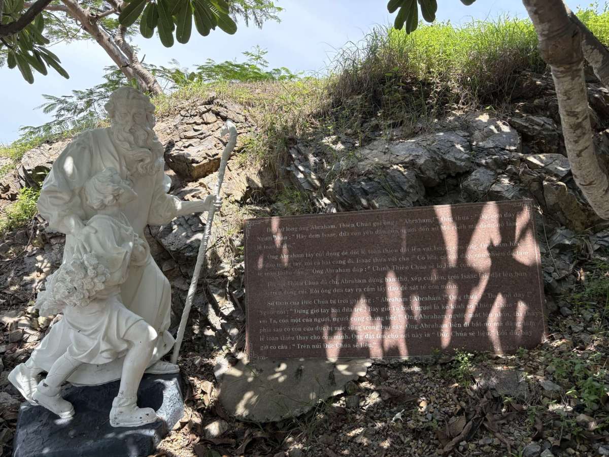 耶穌山嘅登山路,全部都係修葺得好靚嘅樓梯級同埋斜路,行起嚟唔會好困難,即使體能唔好,行下休息下都問題唔大,沿路有好多聖經故事場景嘅雕塑、門徒同先知嘅雕塑、十誡等等,大多數只有越南文,我哋估估下邊個係啲乜都幾好玩~