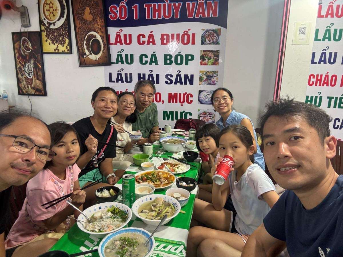 我冇逐道菜影相,大家可以click過去我家姐個blog度睇(截至打blog嘅今日,佢越南之旅進度慢我少少,去到day 3上午嘅耶穌山XD~catherine.wufamilyblog.com)~只記得有個魚湯,係鯹定咩原因呢?有啲人有飲,有啲人話飲唔到之類~我就食飽飽,day返到酒店淥咗個杯麵(定杯河粉?),佢原來覺得嗰間鋪頭有啲污糟,唔太開胃…莫非呢啲就係視力好嘅壞處?我又冇特別睇到啲咩污糟喎~哈哈~