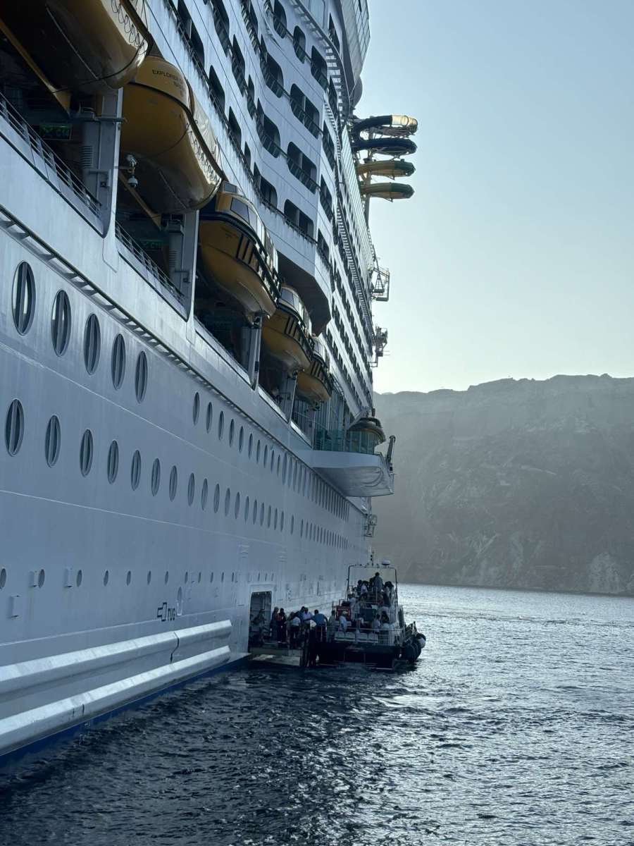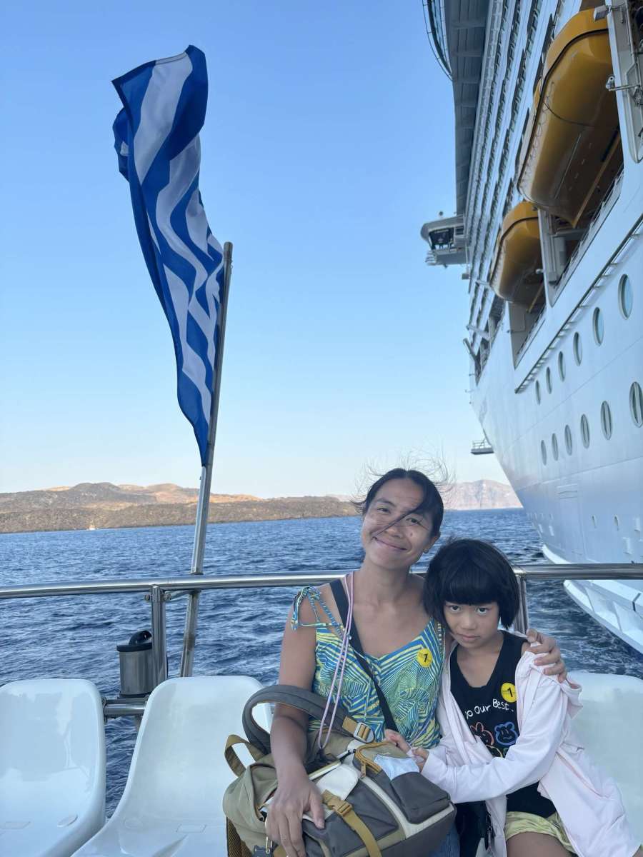 希臘我哋會停兩個港口,雅典同埋Santorini,Santorini算係我夢寐以求嘅其中一個旅行目的地,所以我好期待呀~有別於其他港口,郵輪唔可以直接停泊Santorini岸邊,所有郵輪都要停係附近海域,旅客再搭接駁船上岸~我哋join咗day tour,所以照舊係劇院集合等候出發~大概係食相同嘅自助早餐食得太多次了,我同老公都不約而同冇影任何相~