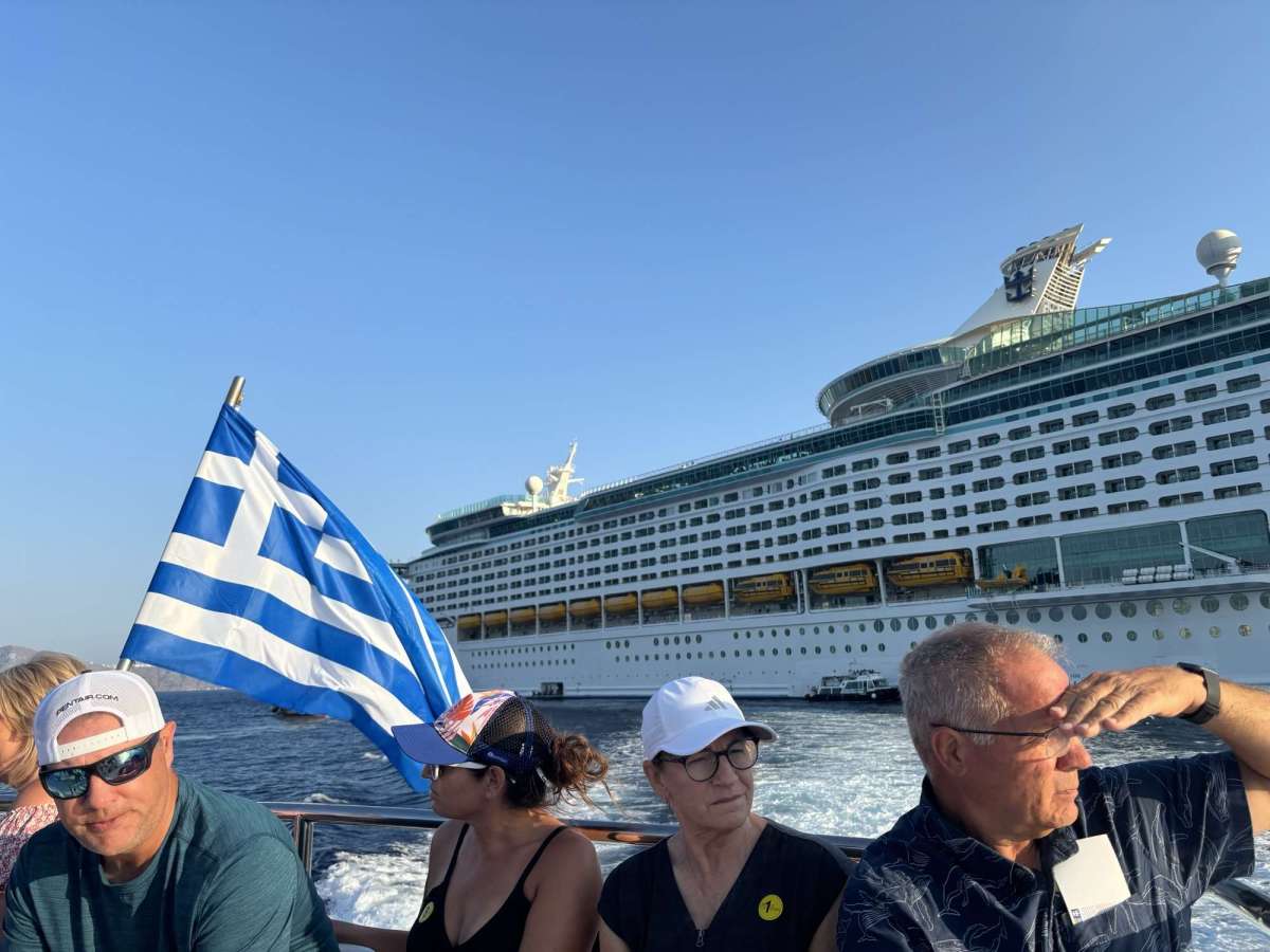 喺接駁船我哋揀咗露天座位,咁好嘅地中海陽光、天氣、海風點可以唔好好享受呢~周圍睇下,起碼有5至6隻郵輪停泊係附近,咁島上面咪會好多人?!