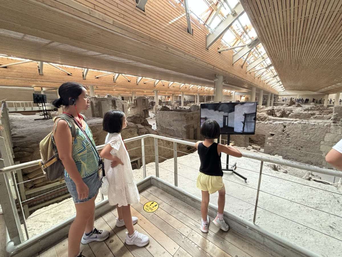 睇番啲網上資料,原來以前係Akrotiri生活嘅人,已經係公元前四千年,佢哋特別highlight嘅,係建築上嘅多層建築、排水渠道、廁所,以及陶器上面嘅裝飾、壁畫、傢俱等~我即刻search下差不多時期中國人做緊啲乜,Google AI話中國係仰詔文化同馬家浜文化時期,嗰陣我哋除咗有刻咗符號(可能係早期文字)嘅陶器之外,仲有高腳杯同埋玉器喎~