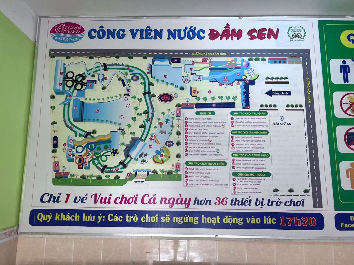 點解要去Dam Sen Water Park?其實呢度唔係旅客之間嘅知名景點,亦冇特別出名好玩,就係特別平!!!去東南亞旅遊,都會諗玩水,我嗰兩個更加係玩極都唔厭,無論係屋企樓下泳池,定係附近沙灘,去極都唔嫌多~我search胡志明市有咩水上樂園,搵到呢個Dam Sen Water Park,入場門票平到你唔信,大人都只係港幣$60左右,小朋友就更優惠~相比起剛剛去完嘅澳門新濠影滙水上樂園,每位要$300+,真係差好遠~價錢咁平,期望都相對調低,去到發現設施都唔錯喎,唯一一個唔好嘅,就係身高嗰條線畫得比較高,1.4米先路路暢通,今次去旅行時,最大個嘅小朋友曉都係差<1cm先夠1.4米,水上樂園都係唔俾佢玩啲刺激嘢~所以小朋友有得玩嘅設施就少啲囉,但係我哋有咁多人,樂趣又唔會少咗嘅~