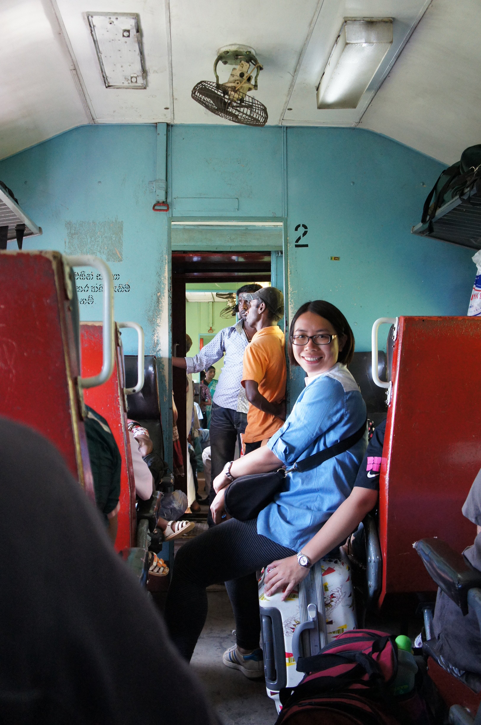雖然second class已經係呢班列車最高級o既車卡(其實只有second class同third class),但係不設劃位的,所以啱啱上車時我哋都唔係人人有位坐,所以我坐住行李先啦,由家姐守護我~慢慢後來有人落車,我哋就人人有位坐,再有多啲人落車,我哋就可以坐埋一齊了~斯里蘭卡火車都有好耐歷史,但維持得麻麻地,亦冇隨住時代而改善系統,列車極度搖晃同埋好噪吵,唔扶住係會跌o既水平﹗車廂冇冷氣,但有大大o既窗口,吹起風嚟都好涼,甚至有啲凍添~不過,雖然列車好殘舊,但因為人民質素好,所以好乾淨,冇垃圾之餘,大家坐位子亦好禮讓~