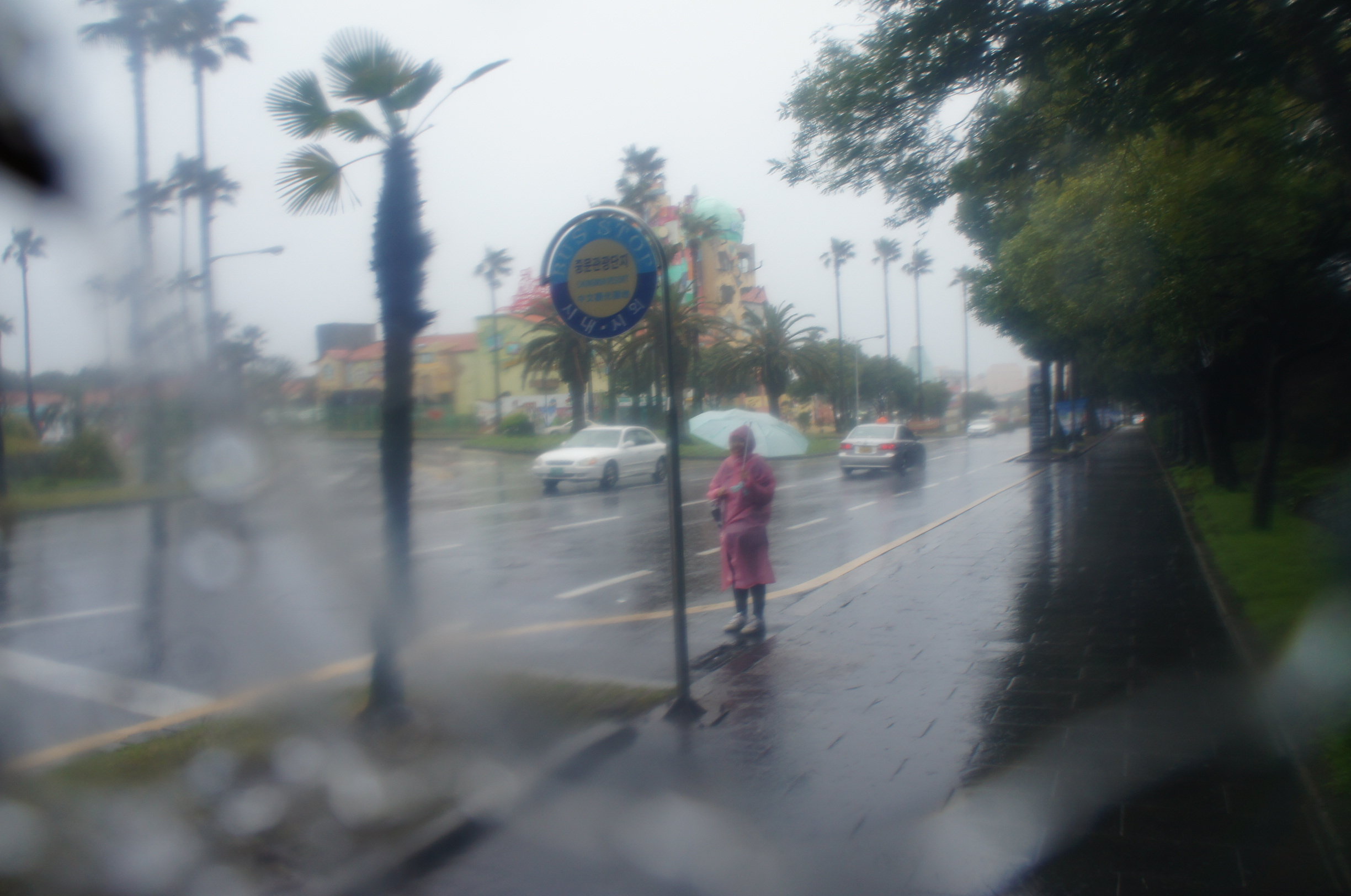 果然買雨褸係正確的﹗﹗﹗紅色嗰個就係我了~雨雖然好大,但行程要繼續~我哋係番落車嗰個巴士站搭巴士去咗西歸浦,嗰度2002日韓世界杯時o既大大大球場~