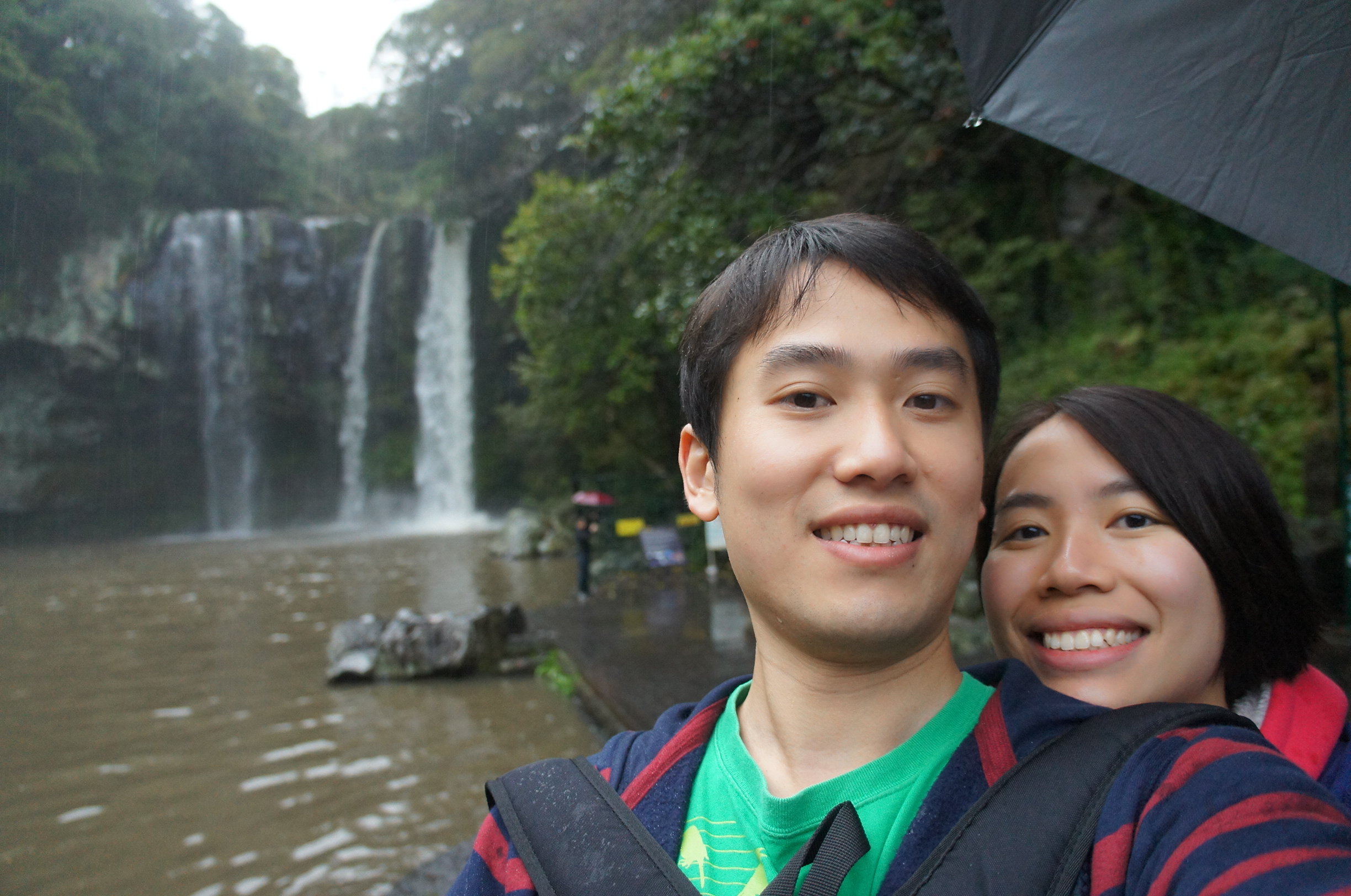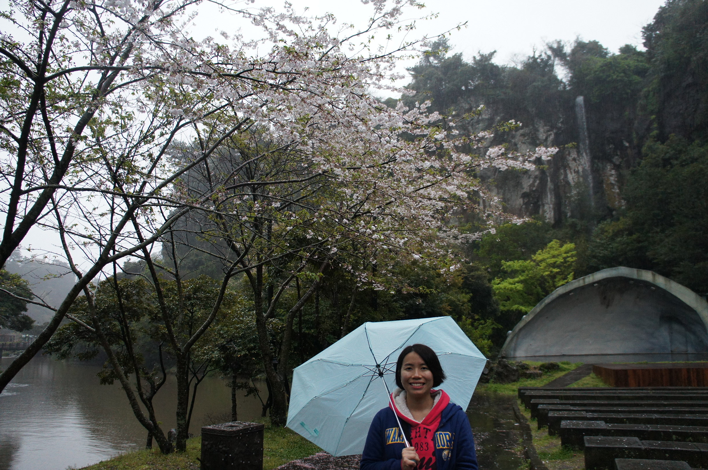 雨中櫻花~我哋再上番巴士,天地淵瀑布比較靠近西歸浦市~落車見到,哇~~~~~~~~~~~~~~~~