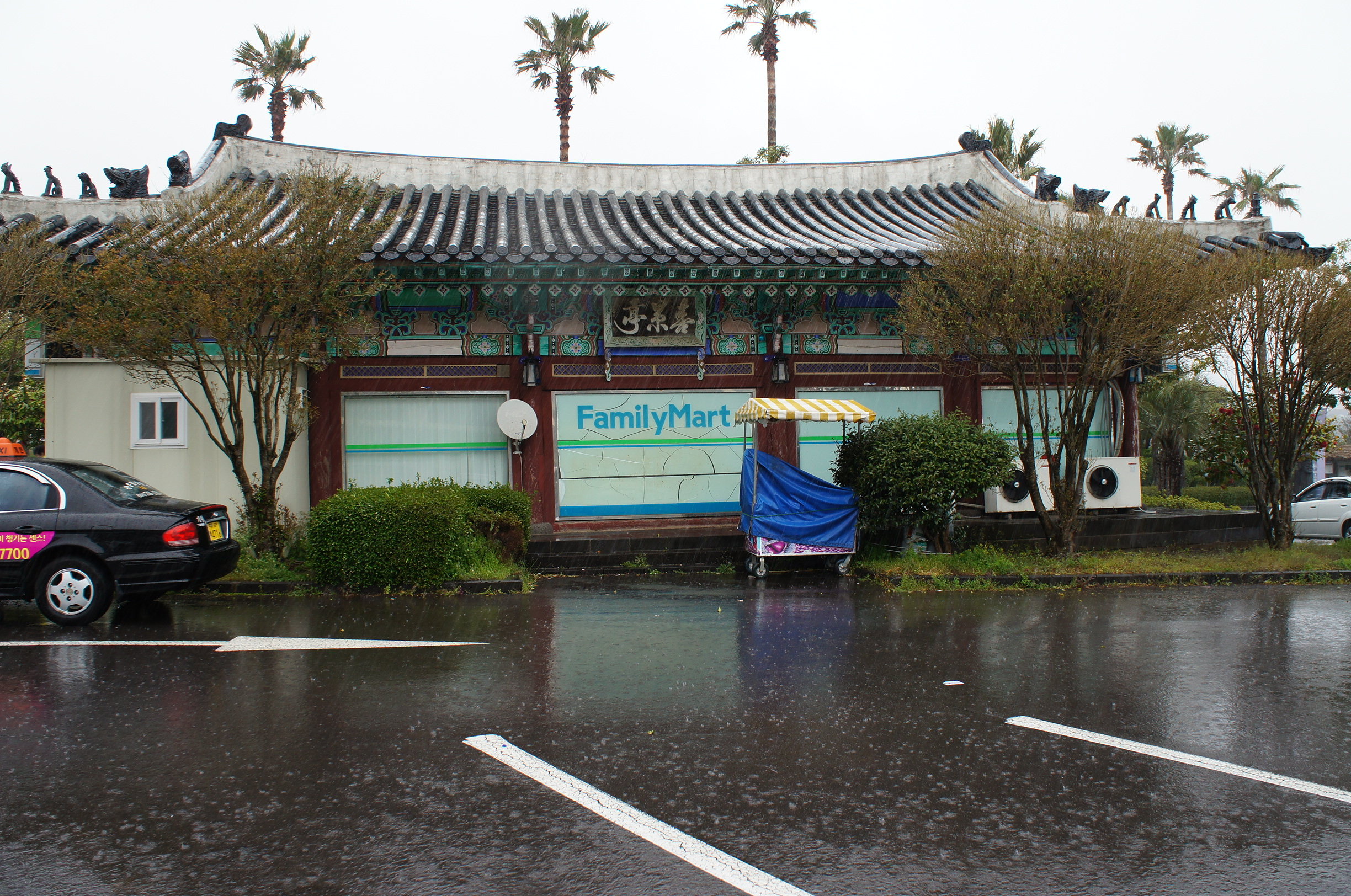 逛完嗰三個博物館都係時仲搵個地方食午餐了,哎吔吔,點解周圍都好似冇食嘢o既地方?好不容易見到唯一o既一間食肆,但入到去o既感覺完全係旅行團o既團餐feel,anyway,睇番個餐牌,食物o既選擇同埋價錢都係正常餐廳咁,就係度食啦~係韓國,當然先嚟幾碟小菜啦,細個時唔鍾意最basic o既大白菜泡菜,但而家就覺得佢最有韓國特色,而且味道好多時都唔錯,當然我都鍾意嗰啲唔辣o既小菜,仲有係香港o既韓國餐廳比較少有o既魚乾仔~我哋叫咗石鍋飯同埋牛骨湯,味道都算正常,牛骨啲肉少dd囉~行到出去,勁大雨,發現唔對路,只擔遮都一定全身濕晒﹗我哋決定買件雨褸~