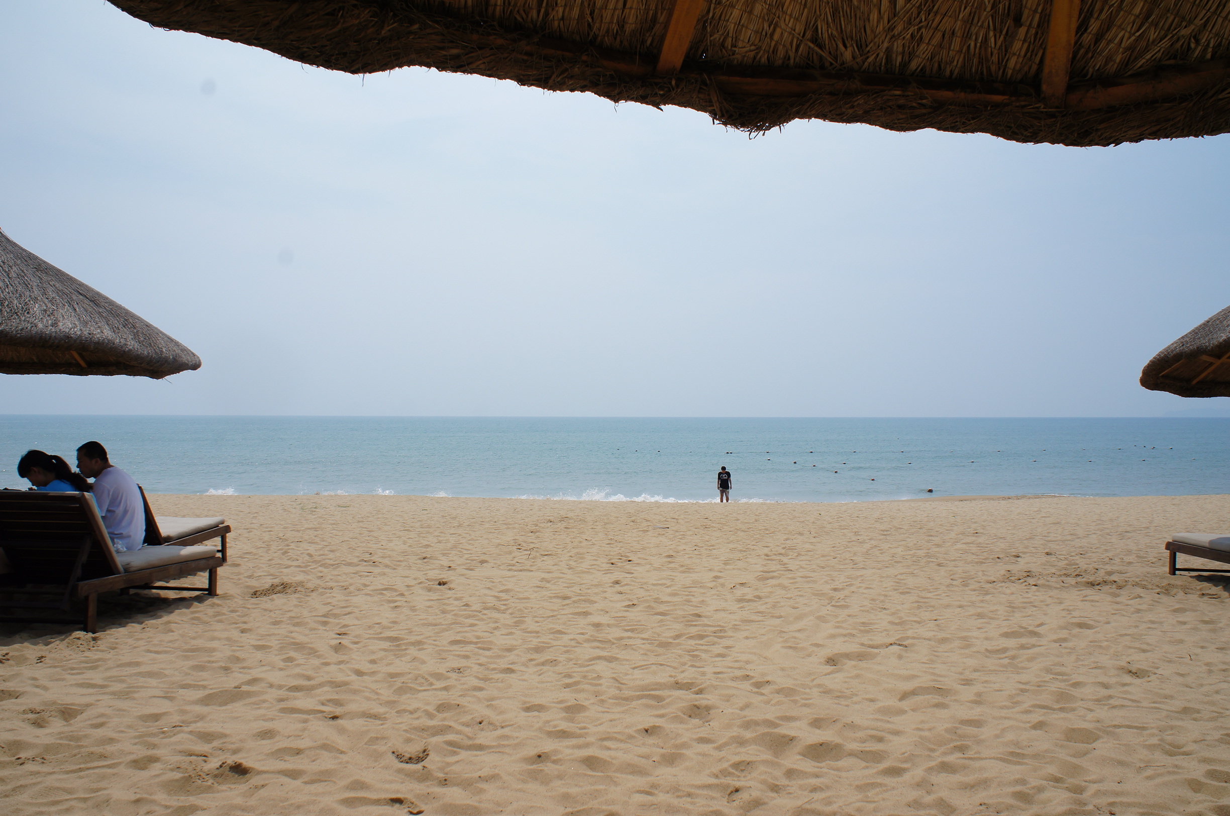 雖然都想浸浸腳但實在太熱了﹗我哋分頭行出去,都係逗留1分鐘就返來~ :p頭先咪話原來帶漏咗嘢o既,就係冇帶飲品﹗我哋結果係口渴到頂唔順,決定去食lunch + 飲冰水﹗我哋收拾細軟之際,有個餐廳o既waitor走出來沙灘,問我哋要唔要啲咩嘢飲,哎吔,遲咗一步,如果佢早少少出嚟我哋大概就會幫襯了~