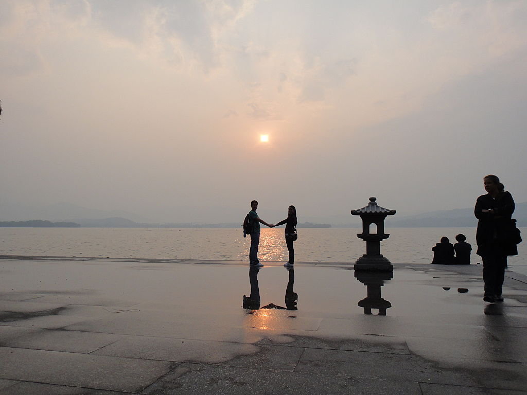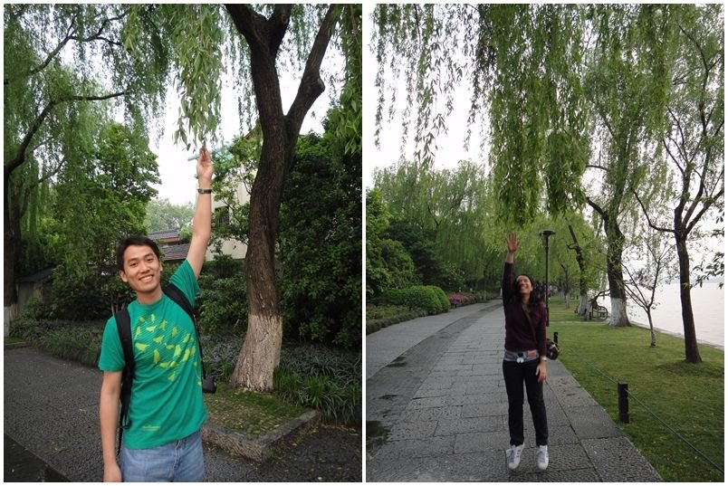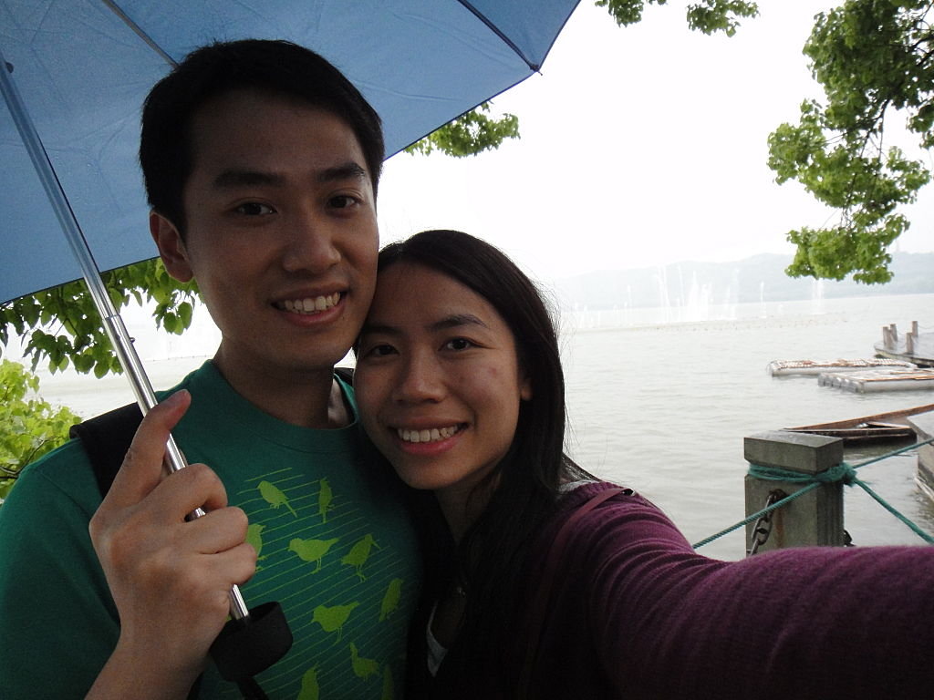 雖然係正確o既巴士站落到車,但要兩人撐住一把遮都幾狼狽,因為都唔細雨…其實本身打算踩單車遊西湖,全杭州都有好多公共租借單車服務點,只要有張IC卡,嘟一嘟就可以帶架單車走,一個鐘內還就免費,一個鐘兩個鐘都係幾蚊o架咋,好方便,見到市內都有好多市民用嚟代步,而且佢哋鋪單車徑都好全面~但我哋去問一問,要去唔知咩路o既幾多號先辦到張IC卡呢,哎吔吔,好麻煩丫~所以結果三日都冇踩到單車呢,可惜可惜~