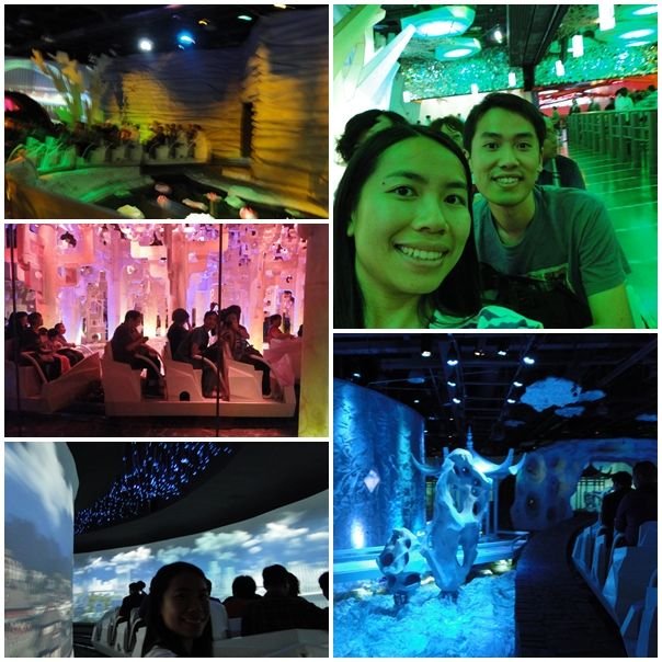 我同day被逼分開坐兩行呀,因為三人一排,佢唔理你同幾多個人一齊,總之就以最快o既方法fill up成架車﹗umum…都有少少好處o既,我哋而家咁樣坐反而可以互相影到啲相~入面的確唔多嘢睇,但啲燈光、亭台樓閣都幾有藝術感o既~