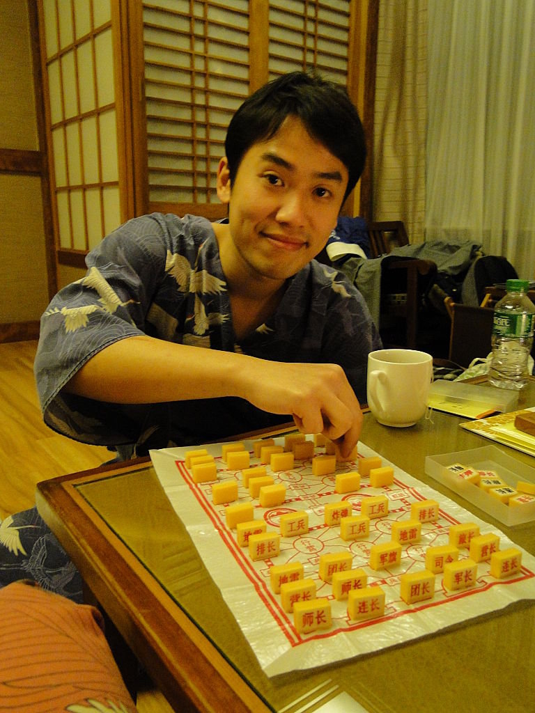 記得以前去御溫泉有鬥獸棋放係度俾住客玩,今次就係另一種棋喎,day都係大約知道規矩係點,但啲軍官o既階級佢都唔記得,又冇說明書,所以我哋自己作番啲次序﹗第一次玩,好緊張呀﹗又唔知自己排o既陣式好唔好喎~但個game最後點樣結束?哈,係day大大咁呼吸咗一啖氣,吹跌咗佢自己o既所有棋﹗哈,冇晒底牌了,又俾我知道晒啲陣式,冇辦法玩落去咯~而且我都覺得呢個game太緊張了~:p