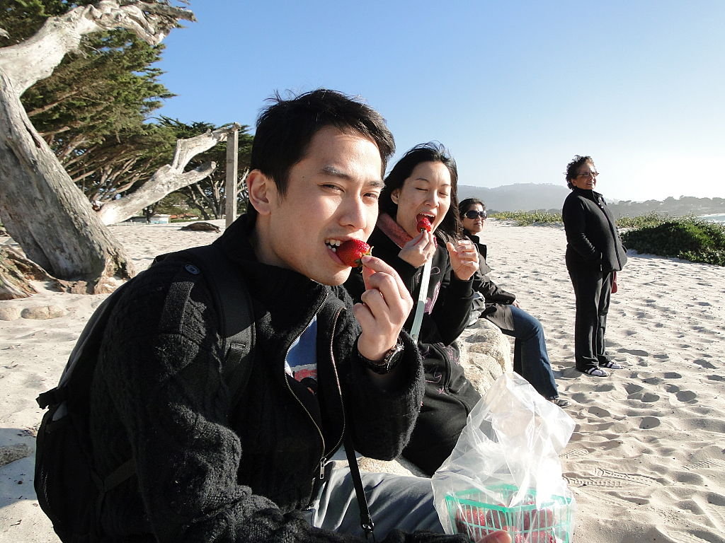 我哋jap jap jap啲strawberries~不過係海邊食嘢有個唔好處,有時啲沙飛咗入口,搞到咬時「sock sock」聲﹗