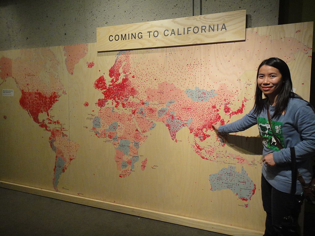 California係一個好多種族共融o既州,你來自邊度呢?大家contribute呢個地圖,可以搣一粒紅色貼紙,貼一貼你來自邊個地方~原來中國沿海地區、日、韓同埋歐洲都好多呢~南中國部份實在太多紅點了,我連香港係邊都唔係好搵到添,都係大約咋~