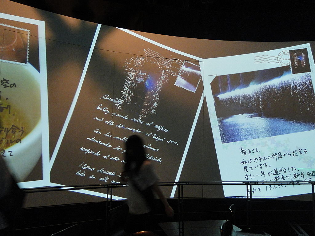 個theatre係圓形的,有360度螢光幕,我哋坐係中間o既「轉轉盤」上面,睇晒360度o既影象﹗貫徹影片內容o既係幾封書信,有唔同國藉民族o既人,居住係台北,然後寫信俾佢哋遠方所愛o既人,有父子、情侶、朋友,配上七彩繽紛o既畫面,動人o既音樂,條片拍得好好睇啊~又可以將台北唔同o既角度展示出嚟,又唔係單純o既旅遊特輯or城市概況,入面投入咗感情,好good~