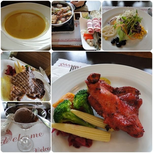 爹爹食個火鍋餐,即是上面中間嗰張相,大大份﹗除咗肥牛之外,仲有大蝦呀、豬紅呀咁~我同媽就食西餐,兩個都係用酒嚟調味,媽咪o既牛扒要求十成熟都好軟好嫰,我o既係紅麴雞扒,酒味好濃郁﹗除咗主菜之外,沙律、餐湯、甜品、飲品都一應俱全~啱晒我鍾意「有湯、有飯、有嘢飲」o既要求﹗