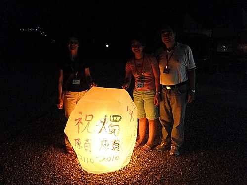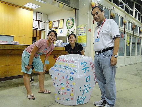 教我們製作天燈的工作人員,一邊示範,一邊講解,非常清晰,值得一讚。我們這個天燈做得很牢固,加上天時、地利,所以升得極高、極遠,讚大家留下一個難忘的回憶。