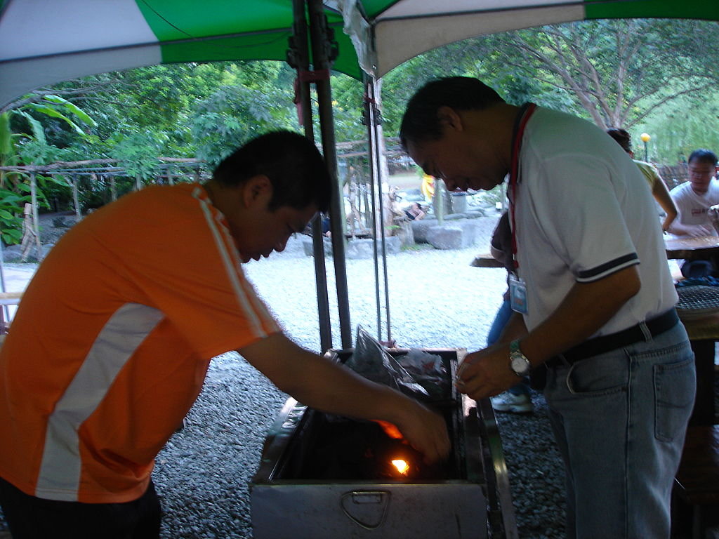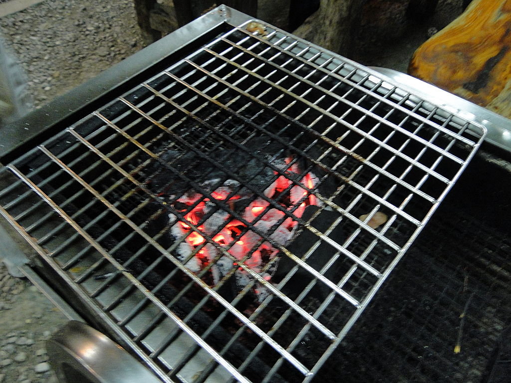 食物種類都好多,但一開始時火力唔均勻,所以好難烤得靚,所以最初時最好食o既就係薄豬扒,火力容易掌握嘛,而最失敗就係雞翼﹗因為仲要係雞全翼呀,特別難烤得靚~港式燒烤就唔同呢,可以自己控制支叉同埋個火o既方向、距離,會易啲烤得靚,但放晒上個網度烤o既反而難烤得好~好在,個火越燒越旺,亦越嚟越均勻,我哋o既第二批雞翼靚咗好多啦~而我哋有烤好幾次o既,亦包括煙肉葱卷,宜蘭o既三星葱係當地o既特產呢~