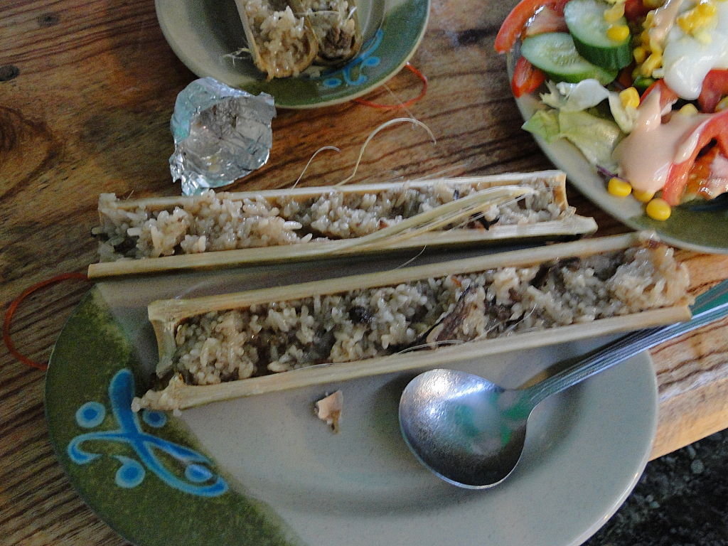竹筒飯已經蒸熟係蒸籠入面,大家只要破開就ok了,媽咪都似模似樣o架~