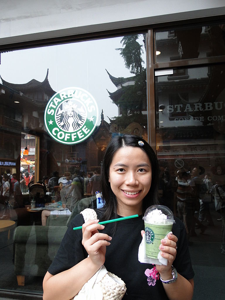 雖然同城隍廟唔係太搭調,但我哋都買咗杯starbucks嚟飲﹗呢個係時間限定product嚟o架喎,香港冇o架~係綠茶黑芝麻冰沙~幾好味﹗尤其day好鍾意芝麻呢~