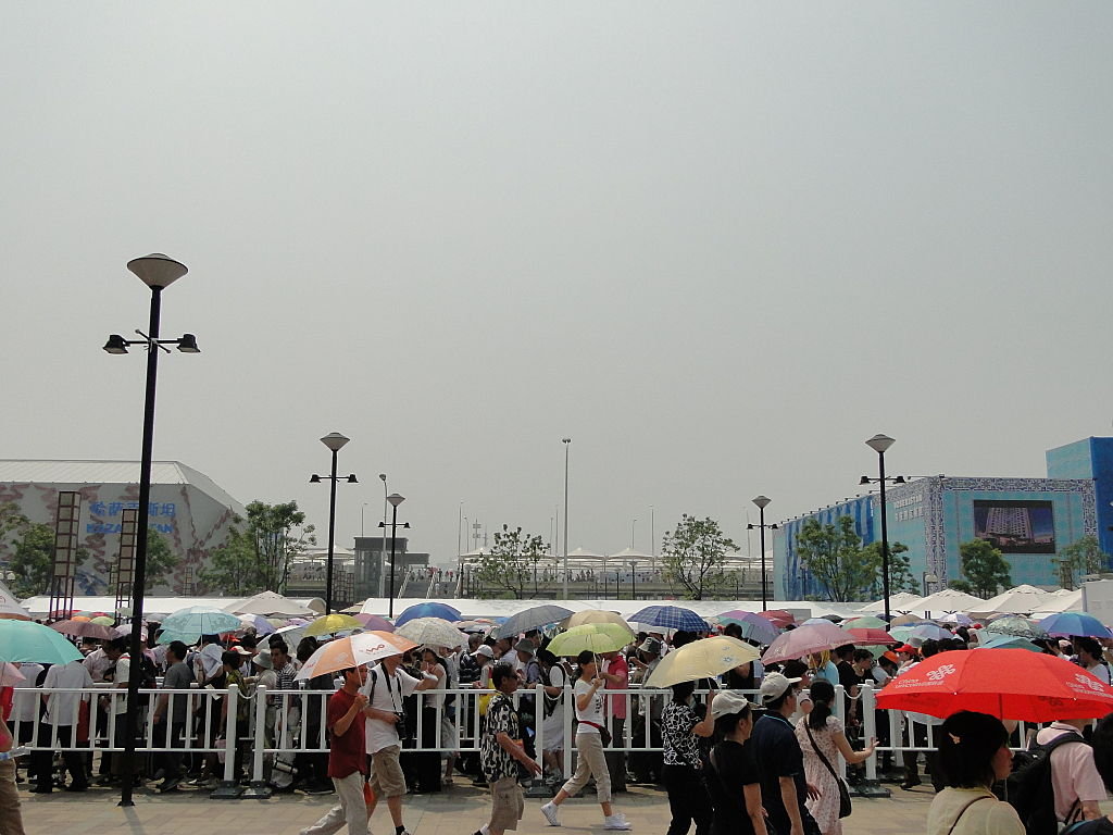 你睇,啲隊幾恐怖?﹗仲要烈日當空呀~排日本館係望唔到個日本館o架~因為疏導啲人潮去啲空地度打蛇餅,起碼打幾個鐘先至可以貼近個場館繼續排…