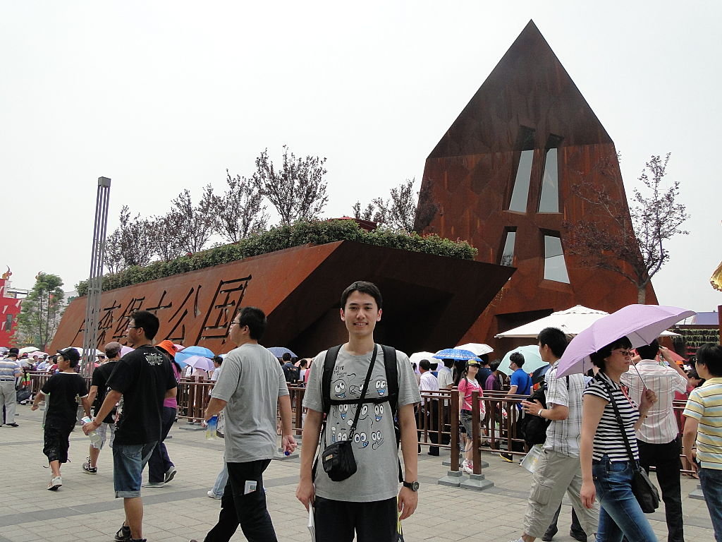 大約八點三就去到園區附近了,沿途已經有好多小販叫賣,賣咩?賣凳仔﹗事關去世博都預咗要排好多隊,所以基本上每個入園o既人都會自備凳仔,我哋由香港空運咗兩張凳仔去,不過day話帶一張入去好lu喎,輪流坐好過拎得太重咁話,於是我哋帶咗一張銀行信用卡贈送o既hello kitty凳仔入去,要打開只需兩秒鐘﹗非常方便~