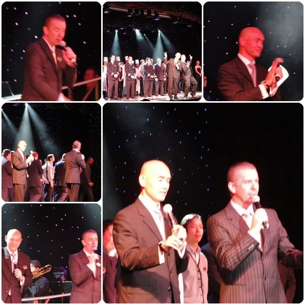 佢哋揮下餐巾,浩浩蕩蕩咁出嚟﹗媽咪又揮揮手作回應呢~所有waiter waitress們排列係樓梯上面,為大家演唱歌曲~