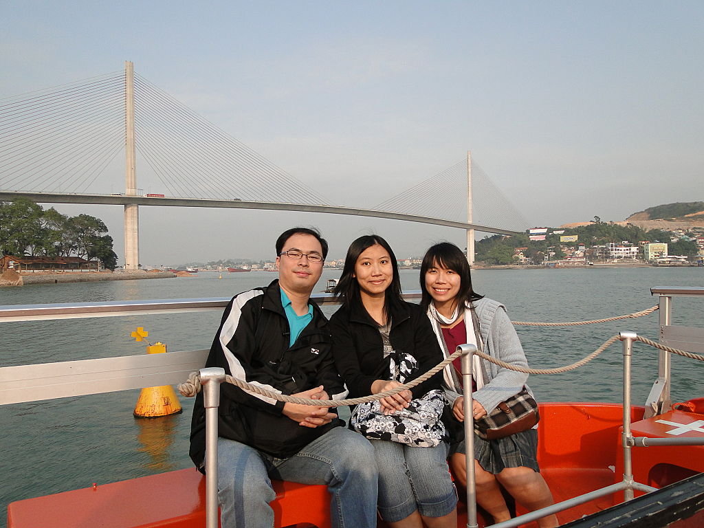 偏偏又俾我哋遇到一架大的士,可以坐晒我哋八個人喎,咁就一口氣過去對岸咯~