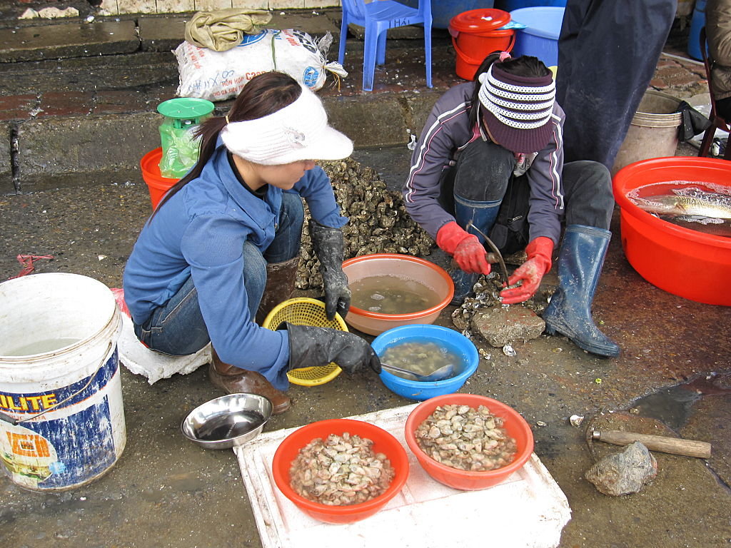 市場又有忙於作業o既女子剝蠔殼,因為臨海吧,好多活跳跳o既海鮮呢~