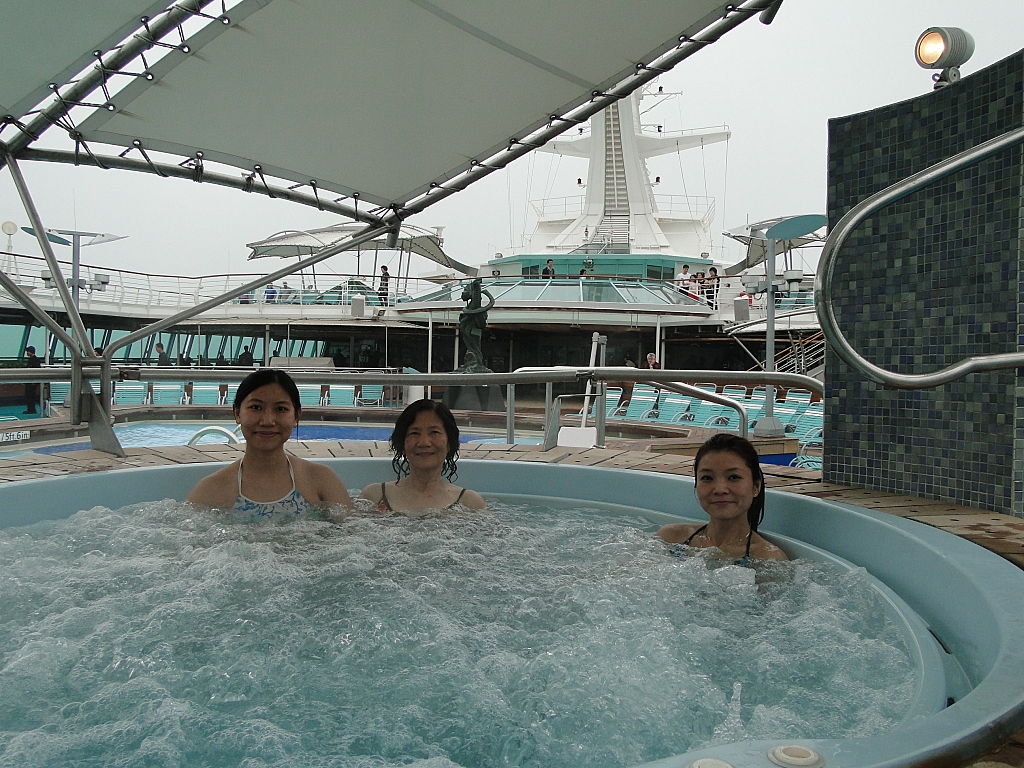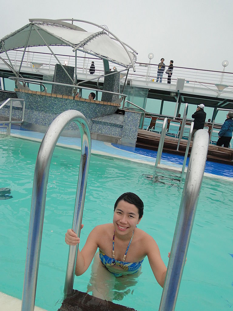 第二項節目係—-游水﹗遊輪有兩個泳池,一個室內一個室外,仲有幾個暖水按摩池,天氣其實都涼,我地都係游室內池先~