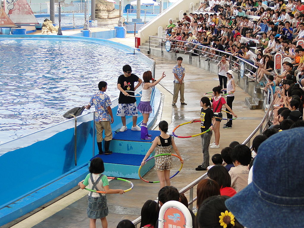 當然又有邀請觀眾一齊參與o既環節啦﹗被挑選o既觀眾們以為有機會同海豚作近距離接觸…結果…只係佢o地各自玩呼拉圈…