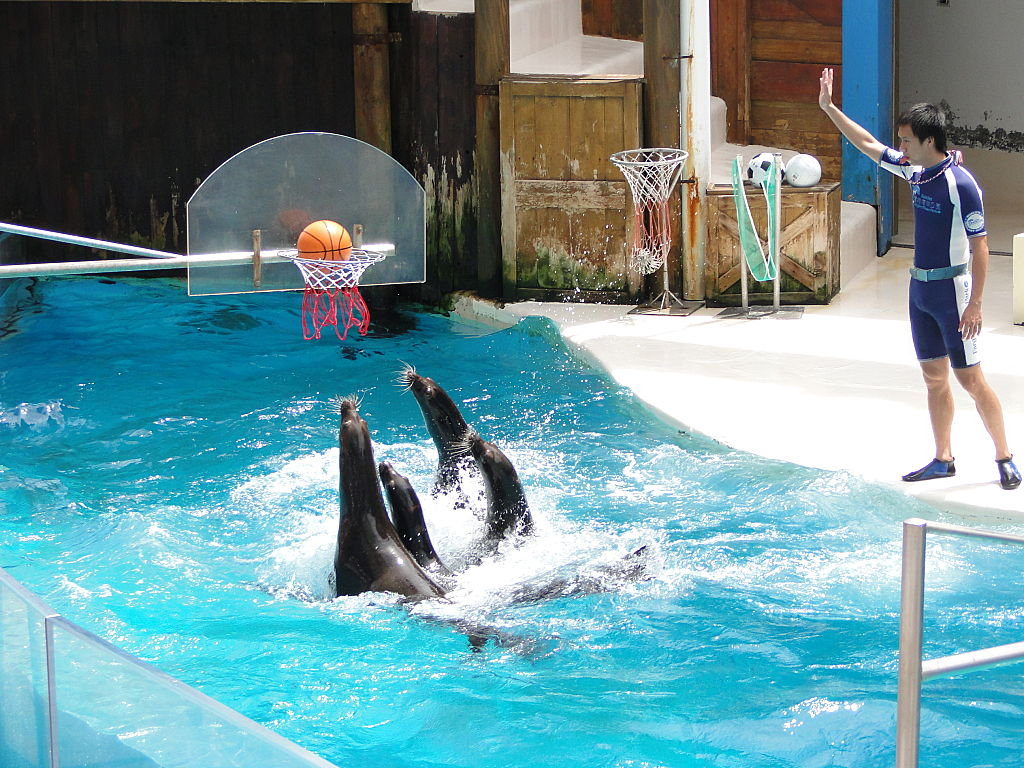 唔係扮o架啩?我覺得D海獅真係好努力比賽打籃球o架喎~