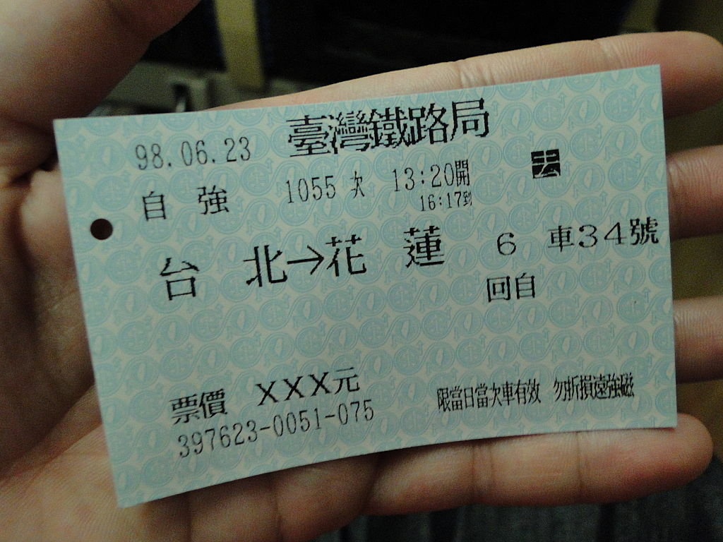 車票~我o地買好來回票,來往花蓮雙程大約800台幣,兩程都係自強號列車,車程兩個幾至三個鐘啦~